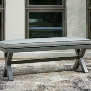 Signature Design by Ashley Outdoor Elite Park Aluminum Bench with Cushion, Gray