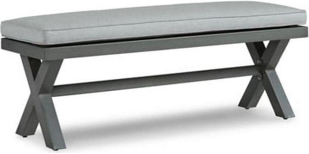 Add a distinguished touch of gray to your outdoor living space with this bench. It’s made with an aluminum frame with a wood-look finish for a relaxed feel that provides seasons of enjoyment. Rest assured, the thick seat cushion is wrapped in Nuvella high-performance fabric that s fade-resistant, stain-resistant and a breeze to clean.