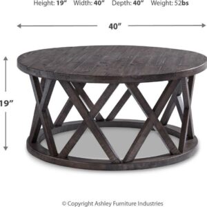 Signature Design by Ashley Sharzane Rustic Round Solid Wood Pine Coffee Table, Weathered Gray Finish