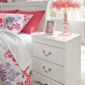 The Anarasia nightstand’s crisp cottage white gives traditional Louis Philippe profiling a delightful style awakening. The look is timeless. The feel Right at home. Two smooth-gliding drawers with antiqued bail pulls beautifully accommodate.