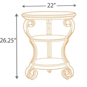 If there s an accent piece with a flair for making traditional elements look so fit for modern-classic settings the Nestor chairside end table is it. It s hard to not fall for the elegance and intricacy of acanthus leaf carvings and shapely serpentine legs. Bathed in a toasty finish with oil-rubbed accents, the tabletop and tiered shelves are top shelf for warmth and high-end rustic appeal.