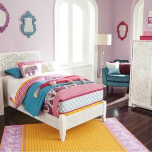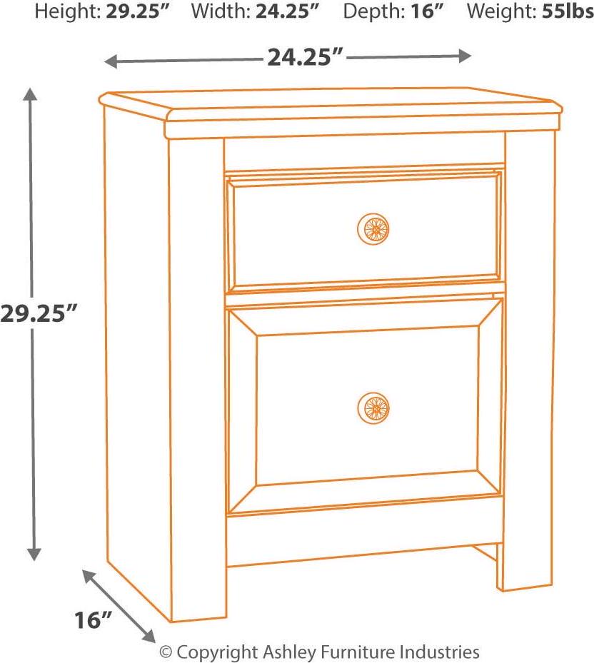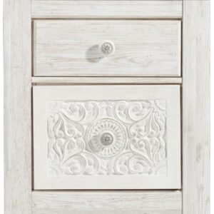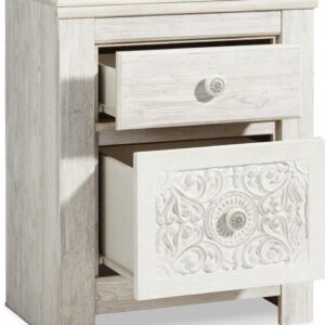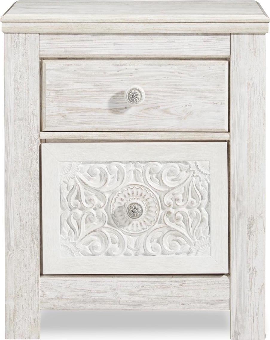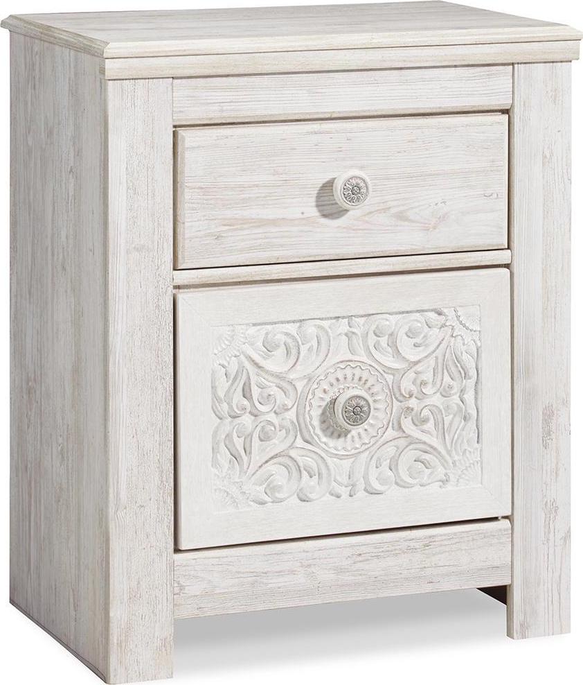 A one-of-a-kind girl deserves a bedroom retreat that celebrates her personal flair and the Paxberry nightstand is so befitting. Wowing with artful, carved-effect detailing and richly distressed whitewash finish, this 2-drawer nightstand is a dream come true if you re searching for something delightfully different. And with USB device charging, this nightstand is right up to speed with her high-tech lifestyle.