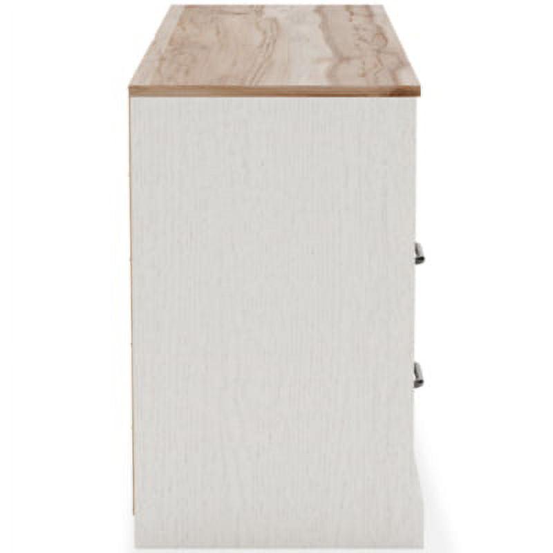 Signature Design by Ashley Vaibryn Farmhouse 6 Drawer Dresser with Warm Brown Replicated Elm Wood Grain Top, Whitewash