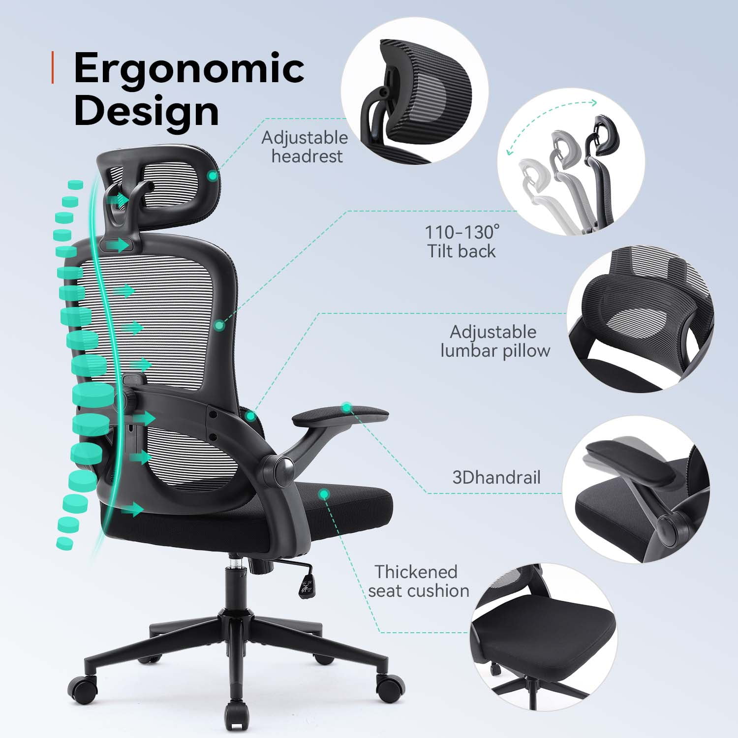 【Independent Lumbar Support and Headrest】 The M102C office chair features an independent lumbar support. It can be flexibly adjusted up and down by 2.36 inches to provide precise support for lower back and relieve issues like sciatica. The headrest also can be adjusted up and down by 2.36in and rotated by 35° to ensure proper head posture. 【Enhanced Wide, Soft Cushion】 Our ergonomic office chairs comfortably supports up to 300 lbs (136kg) with a broader and more spacious design, ideal for diverse body types, a perfect office chair for tall people. The premium sponge reduces hip and tailbone pressure for prolonged sitting comfort. Desk chair’s mesh backrest and headrest promotes heat dissipation and moisture wicking to reduce discomfort and dampness after prolonged sitting. 【Multi-functional Armrests】 The desk chairs for adults armrests of this desk chair can be flipped up and down by 90°. It can save space for smaller or crowded office spaces. The armrests can also be adjusted left and right by 45° to provide more space for big and tall people. You can rotate the armrests inward to support your arm when you need to talk to others. The armrests can be moved forward and backward by 1.57in for proper position to alleviate wrist and forearm strain during long hours of keyboard, mouse, or other arm-supporting tasks, helping to reduce fatigue and discomfor. 【Personalized Support to Meet Different Needs】 High back ergonomic mesh office chair. The backrest of this computer chair can recline 110-130° and the seat height can be adjusted by 3.94 in. So you can customize office chair to your body characteristics and preferences to find the most suitable sitting posture and comfort. 【High Quality and Safety Assurance】 M102C ergonomic chair has passed American BIFMA and SGS rigorous quality and safety tests and meets industry standards. 【Warranty】 Product warranty period is three years. If there is any quality problem, please contact us. After confirming, we will change the accessory for you. We promise to provide you with zero profit product accessories within three years of the warranty period.