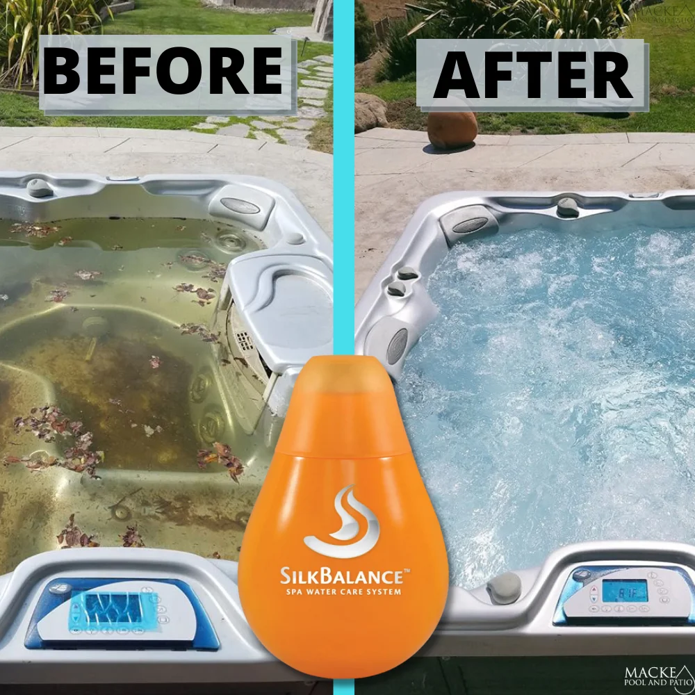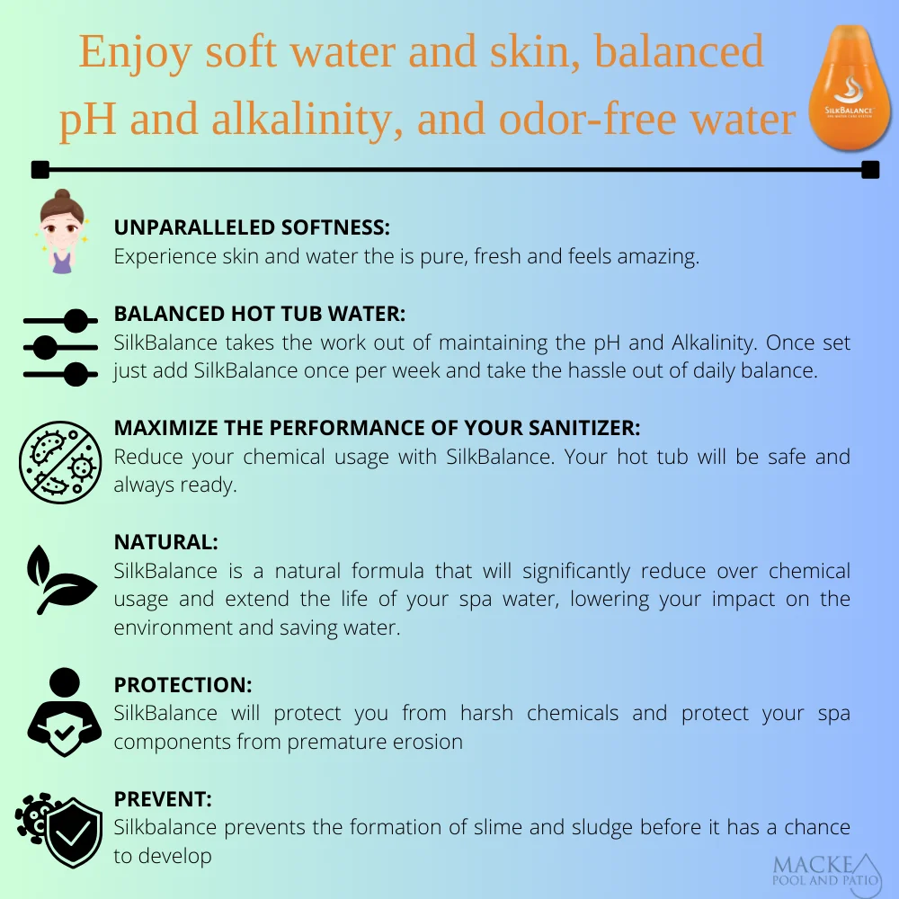 Silk Balance hot tub solution 76oz or 38oz, Hot Tub Oil-Absorbing Sponge for Spas, Natural Treatment to Keep pH and Alkalinity Balanced for Hot Tubs, Pool & Spa, SILKBALANCE Water Care Solution (38oz)
