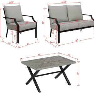 – Chairs and loveseat feature chevron style story back design and seat & back cushions.