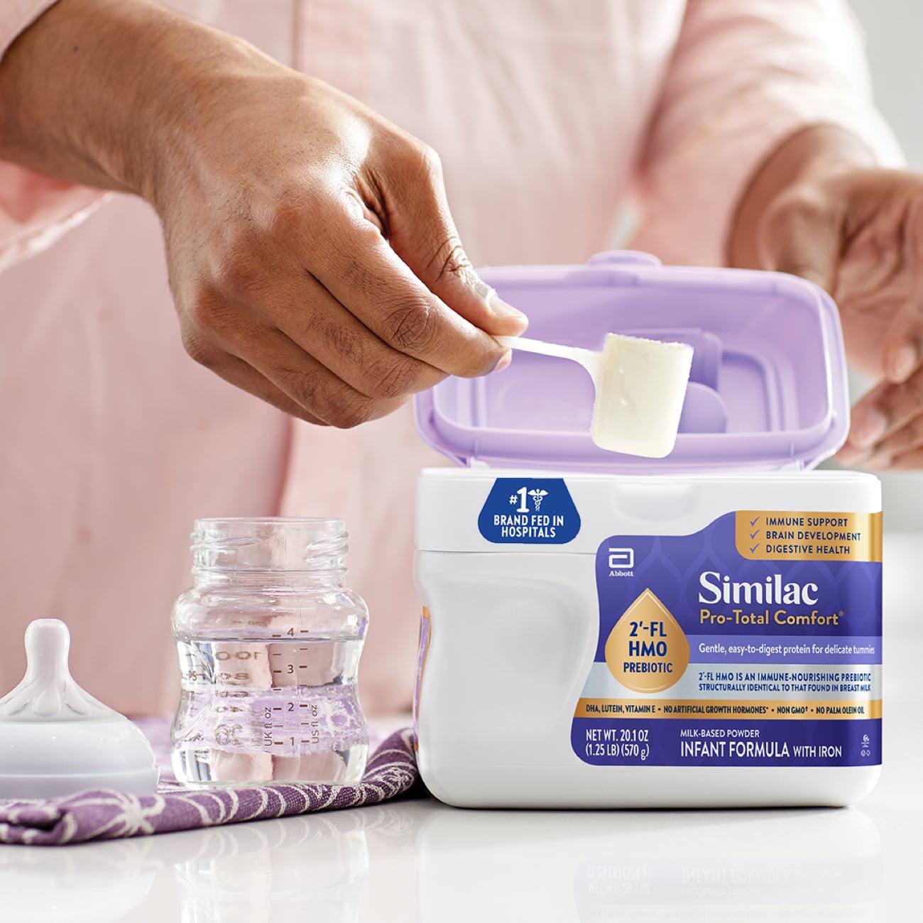 Similac Pro-Total Comfort* is a gentle formula with 2′-FL HMO, an immune-nourishing prebiotic like that found in breast milkthat supports baby s developing immune system. It s an easy-to-digest formula for babies who have difficulty tolerating othermilk-based formulas.* Not for infants or children with galactosemia. At significant levels. No significant difference has been shown between milk derived from rbST-treated and non-rbST-treated cows.§ Ingredients not genetically engineered.