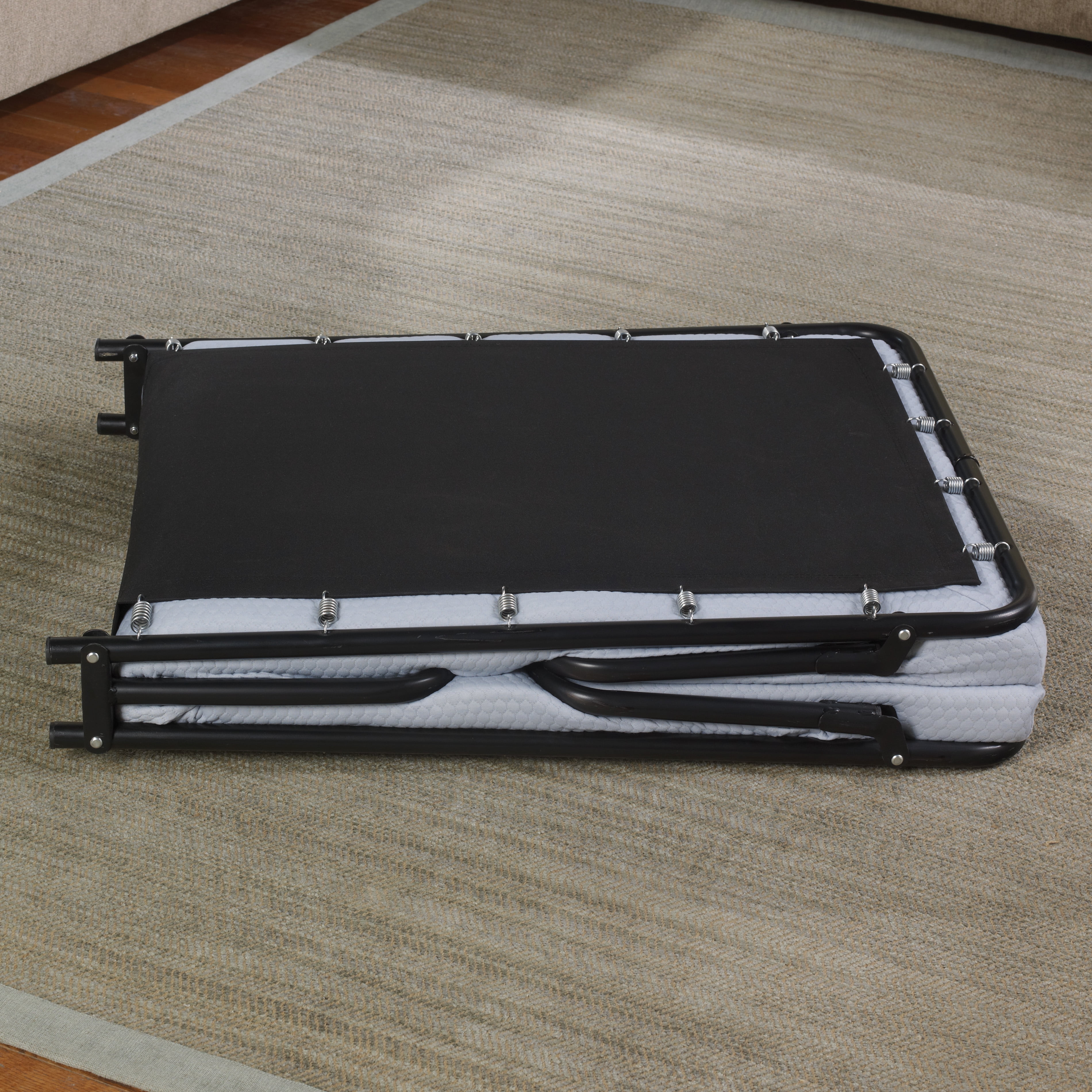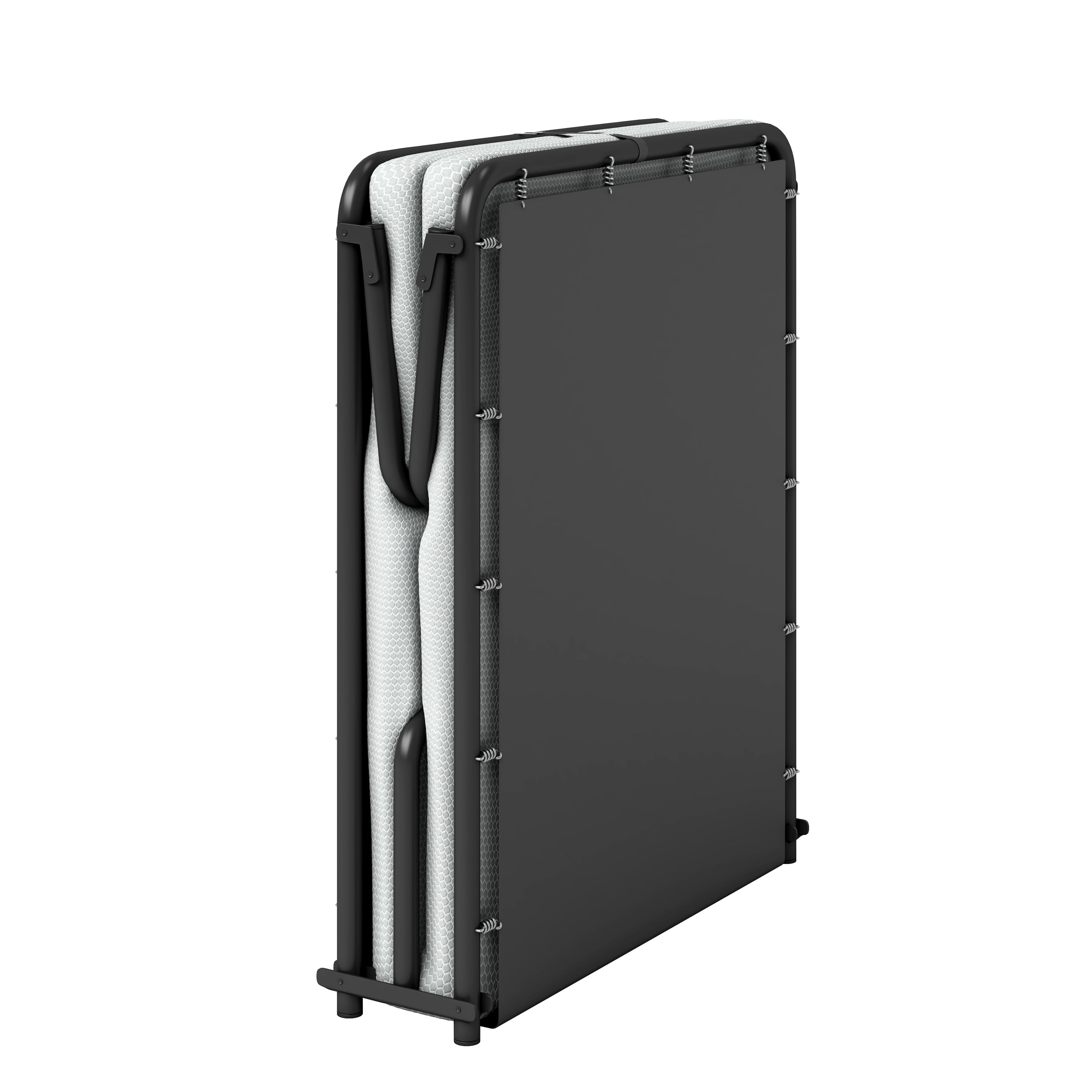 Sturdy Frame: The bed features a reinforced tubular steel frame that supports up to 250 lbs (single size) or 300 lbs (twin size). Its spring suspension system ensures stability and durability while providing a firm yet contouring sleep surface that won’t sag. Premium Comfort: Topped with a plush memory foam and comfort foam mattress, this bed offers a supportive and comfortable night’s sleep. The foam adapts to your body shape to relieve pressure points and enhance comfort. Washable Cover: The mattress includes a premium micro-quilted stretch knit cover that is not only soft and breathable but also removable and washable, ensuring hygiene and ease of care. Compact & Portable: This guest bed can be folded to a thin compact size, making it easy to store in small spaces. Single Size Dimension: The bed measures 75 inches long, 26 inches wide, and 16 inches high when open. When folded, it’s compact at 5.5 inches wide and easy to transport or store. Twin Size Dimensions: The bed measures 75 inches long, 31 inches wide, and 17 inches high when open. When folded, it’s compact at 7 inches wide and easy to transport or store. 1-Year Manufacturer’s Warranty: Backed by a 1-year manufacturer’s warranty, ensuring your purchase is protected. Heavy Duty Weight Capacity: 250 lbs (Single) 300 lbs (Twin) Twin size includes storage strap Vacuum sealing sometimes traps odors; air for a few hours to eliminate trapped odors Box/Shipping Dimensions: Single – 38″ L x 6″ W x 27″ H, 26 lbs; Twin – 39″ L x 7.5″ W x 32″ H, 30 lbs.