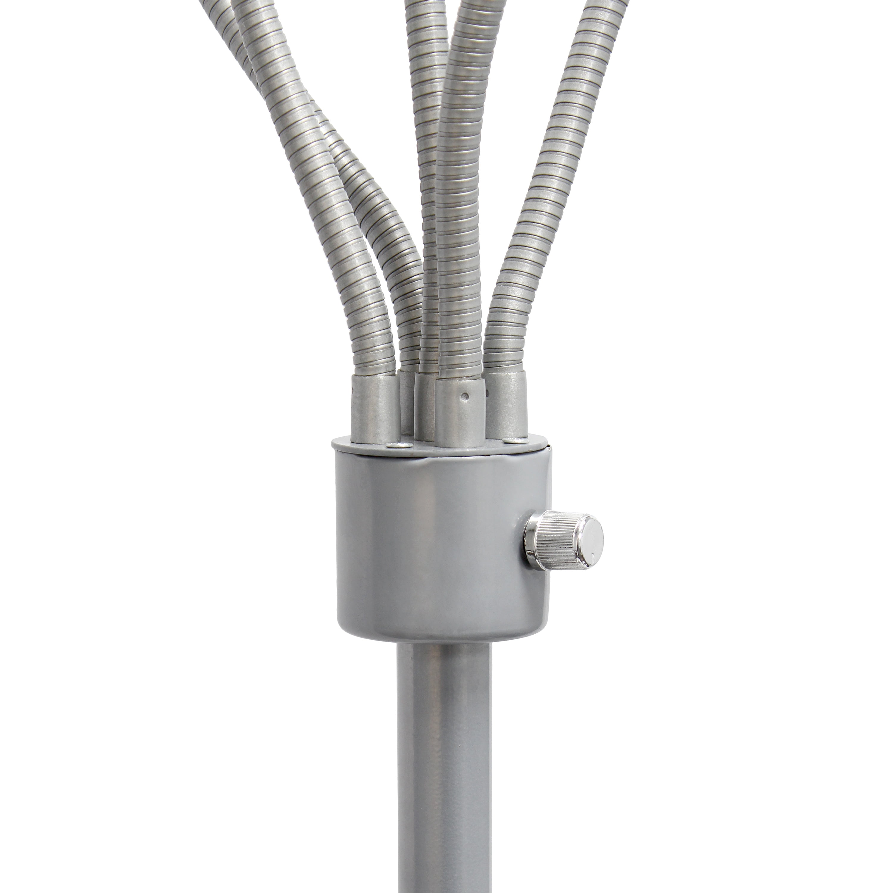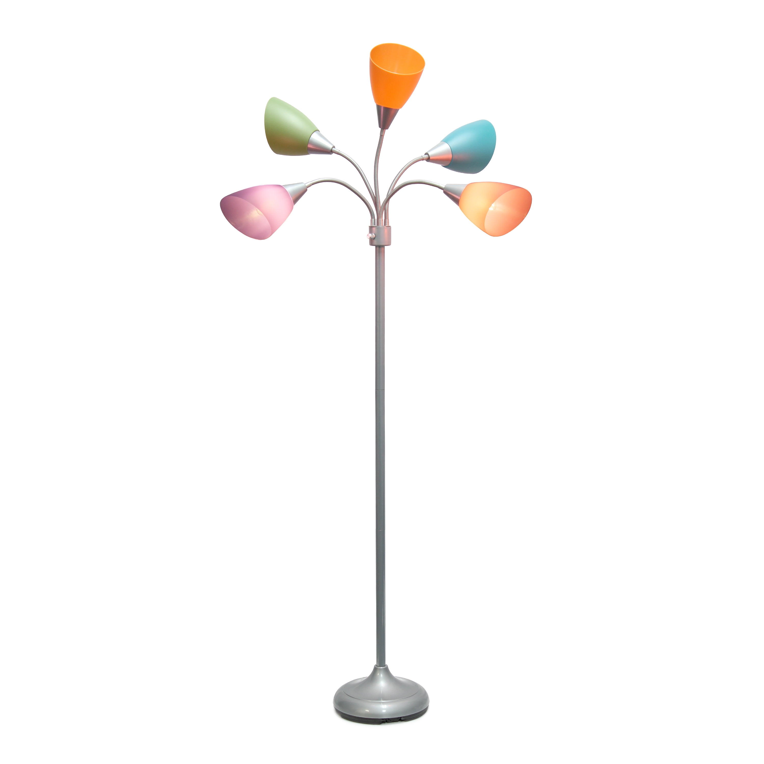 Simple Designs 67″ Medusa 5-Light Adjustable Gooseneck Floor Lamp, Silver with Fun Multicolored Shades
