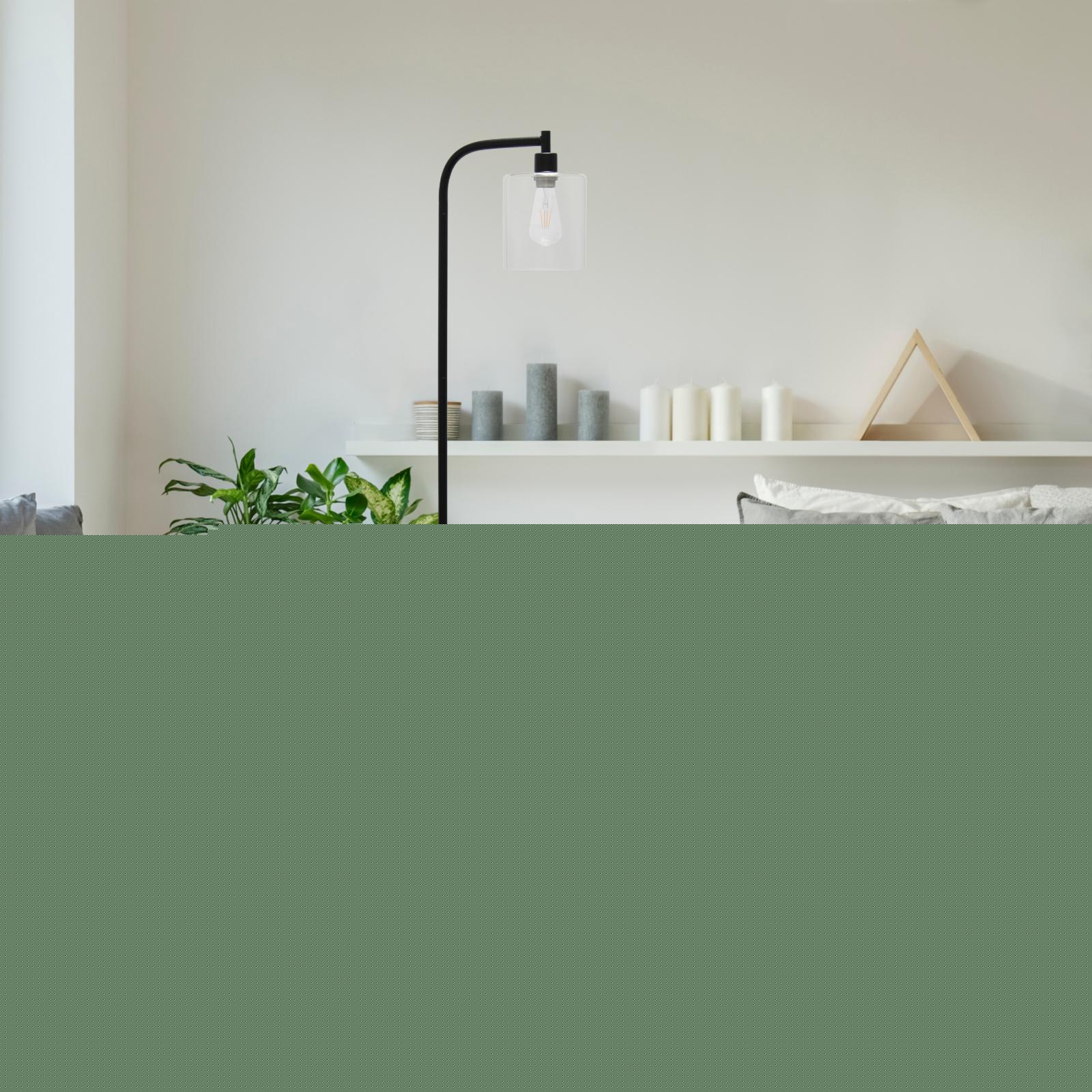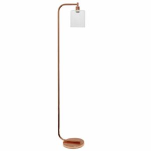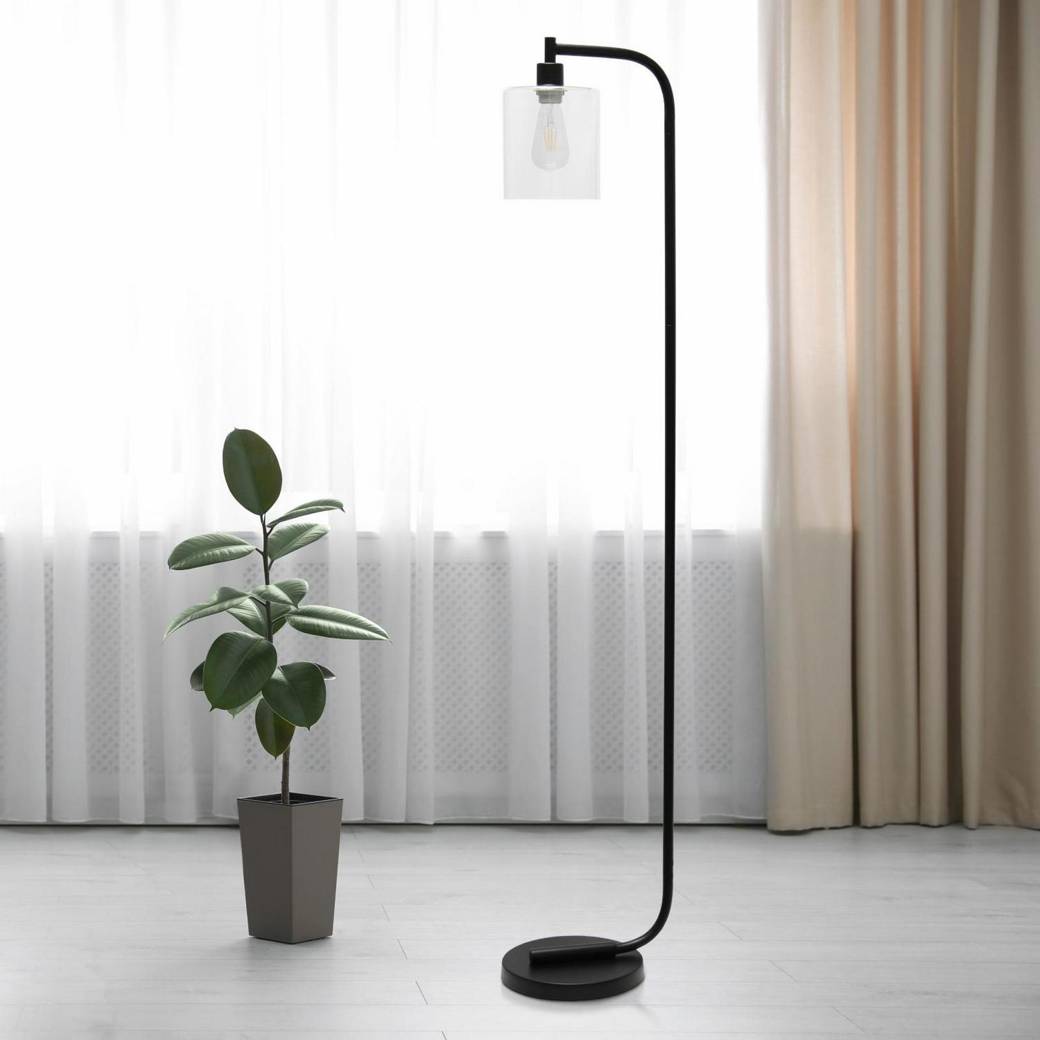 The sophistication of industrial accents gleams in this beautifully crafted iron floor lamp. The humble design combines a simple base with curved arm and a clear glass shade for the perfect ensemble. Add to any room for a modest and refined look.**HELPFUL TIP: To get the complete industrial look, we recommend using a decorative Edison/Vintage bulb (not included). **