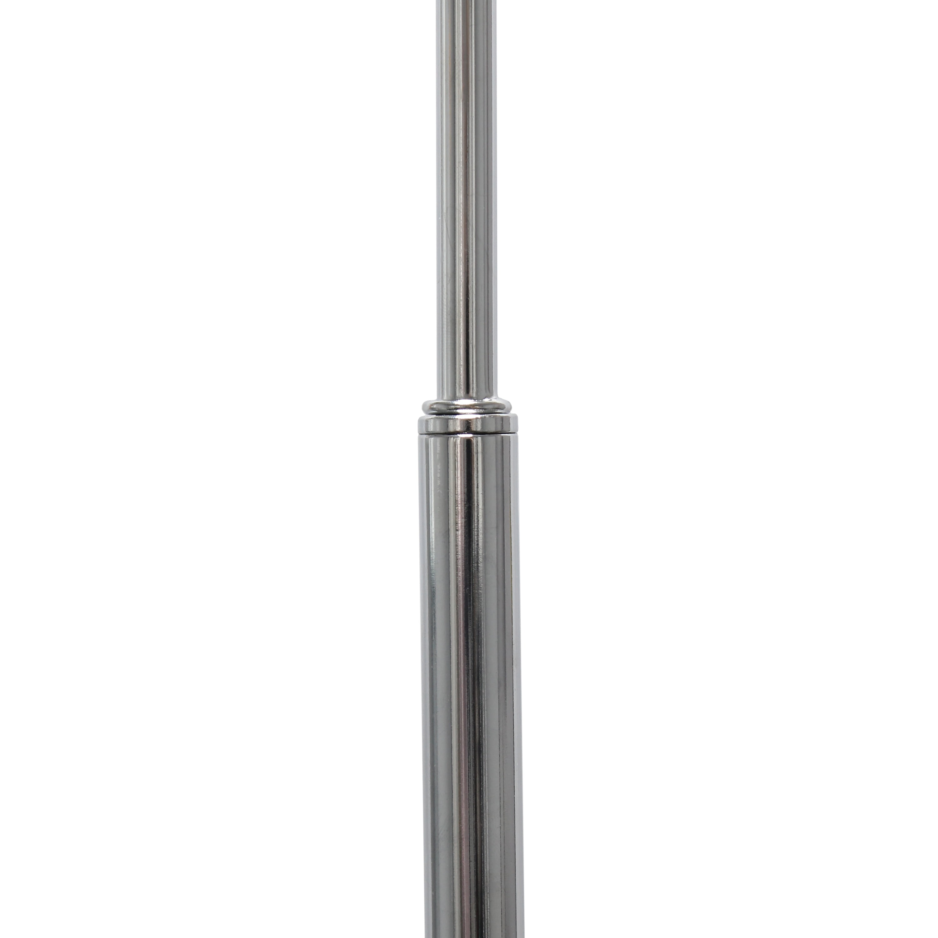 Brushed Nickel finish Gray drum fabric shade Lamp measures L: 11″ x W: 27″ x H: 66″ Foot switch on cord Some assembly required Uses 1 x 100-Watt equivalent Type A Medium Base Bulb (not included)