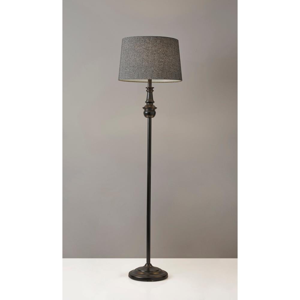 Decor Floor Lamp: This beautiful lamp will make the perfect addition to your home. Tall Lamp: The Charles Floor Lamp features a classic black turned metal pole and base topped with an elegant herringbone tapered drum shade. Exclusive Design: Sleek designs and high-quality materials join together to bring a modern ambience into your home. Versatile Use: With a compact footprint and elegant design, Adesso Floor Lamps provide a large amount of light in a small amount of space. This functional lamp is ideal for a variety of interior settings including corners, entryways, bedsides, and more. Product Specifications: 60 in. height, 14 in. top and 16 in. base diameter shade, black finish, dark herringbone fabric shade, transitional look, 3-way rotary switch, this lighting product is ETL listed, meaning that it has been tested and approved to meet the government-regulated safety standards for the USA.