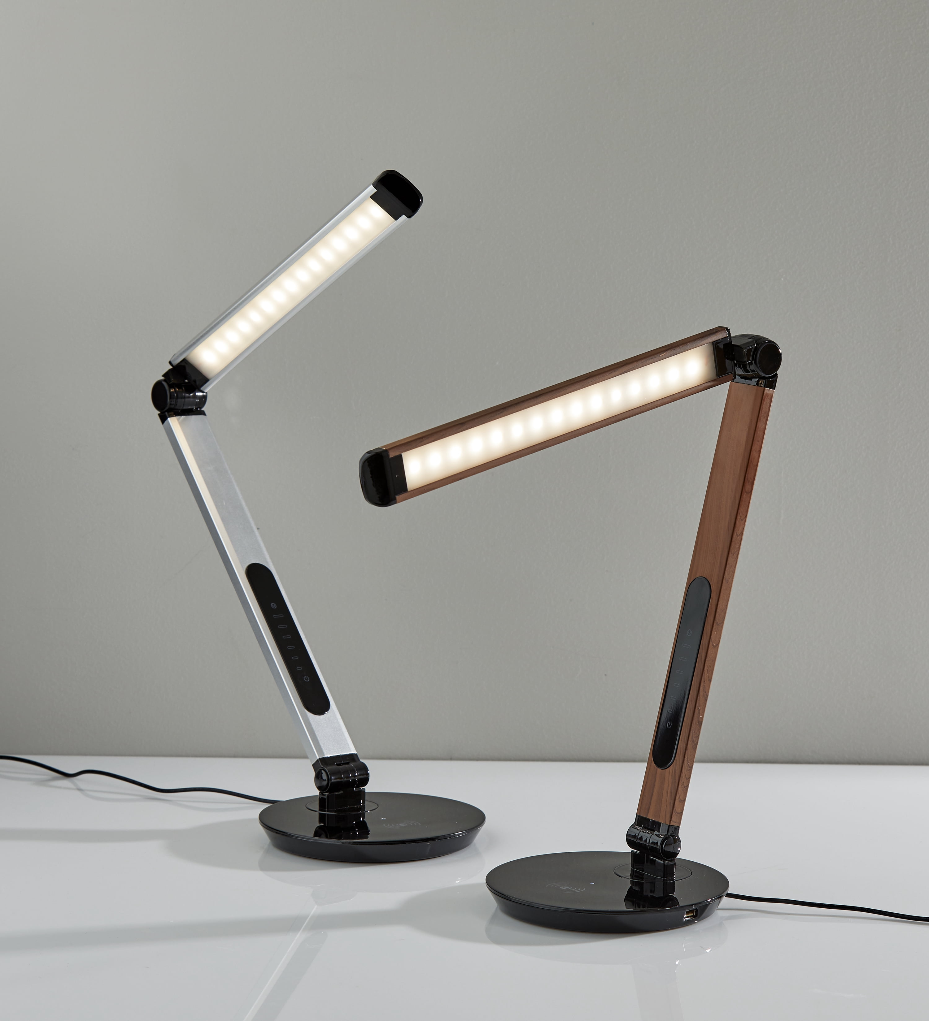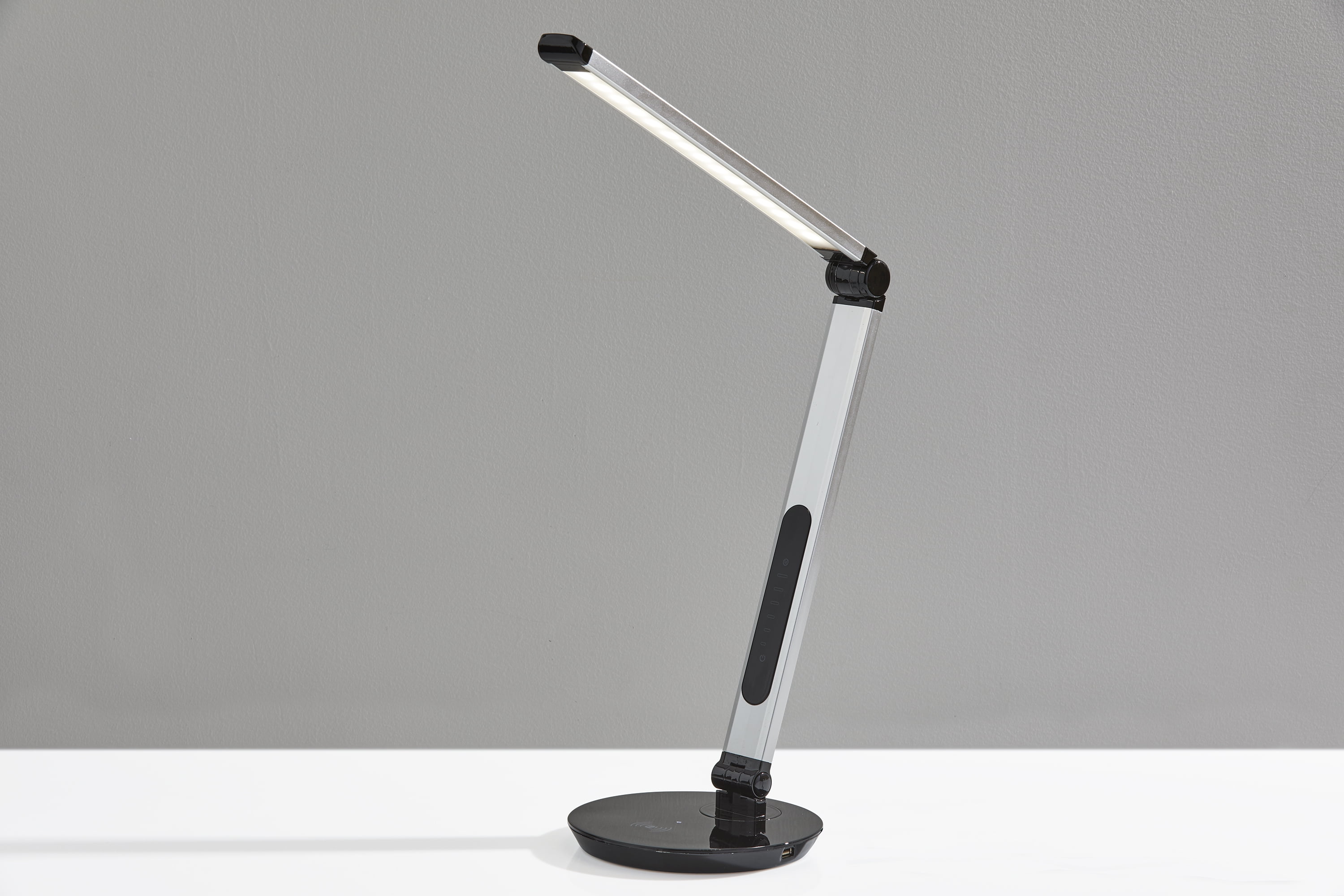 Simplee Adesso Rodney LED Qi Wireless Charging Multi-Function Desk Lamp, Matte Silver and Glossy Black