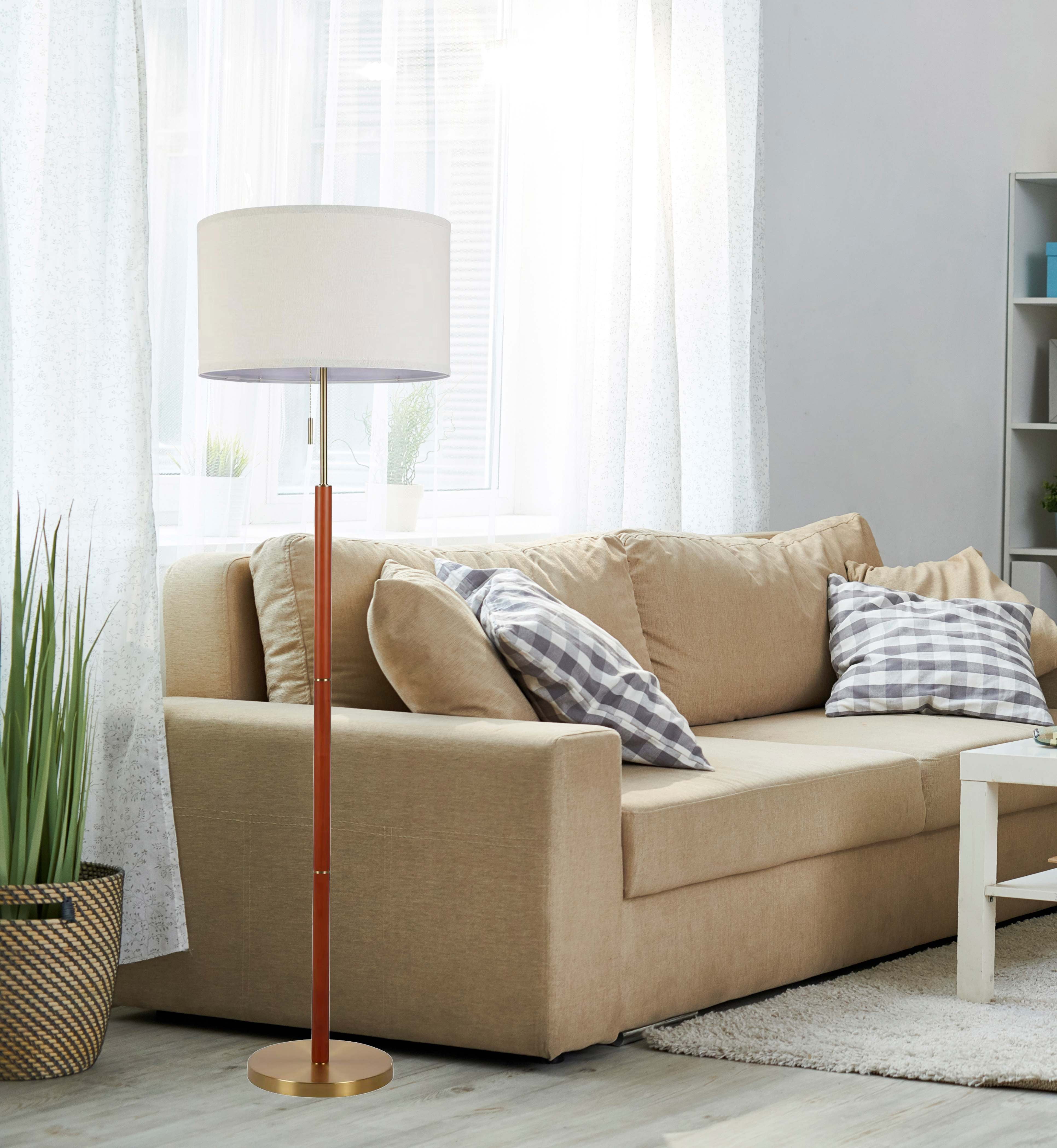 AF40804 is 58in Overall HT Floor Lamp Transitional Styling Adult and Young Adult use Wood and Brass Finish 17″ D x 17″ W x 10’H Fabric Shade Simplee Adesso Brand