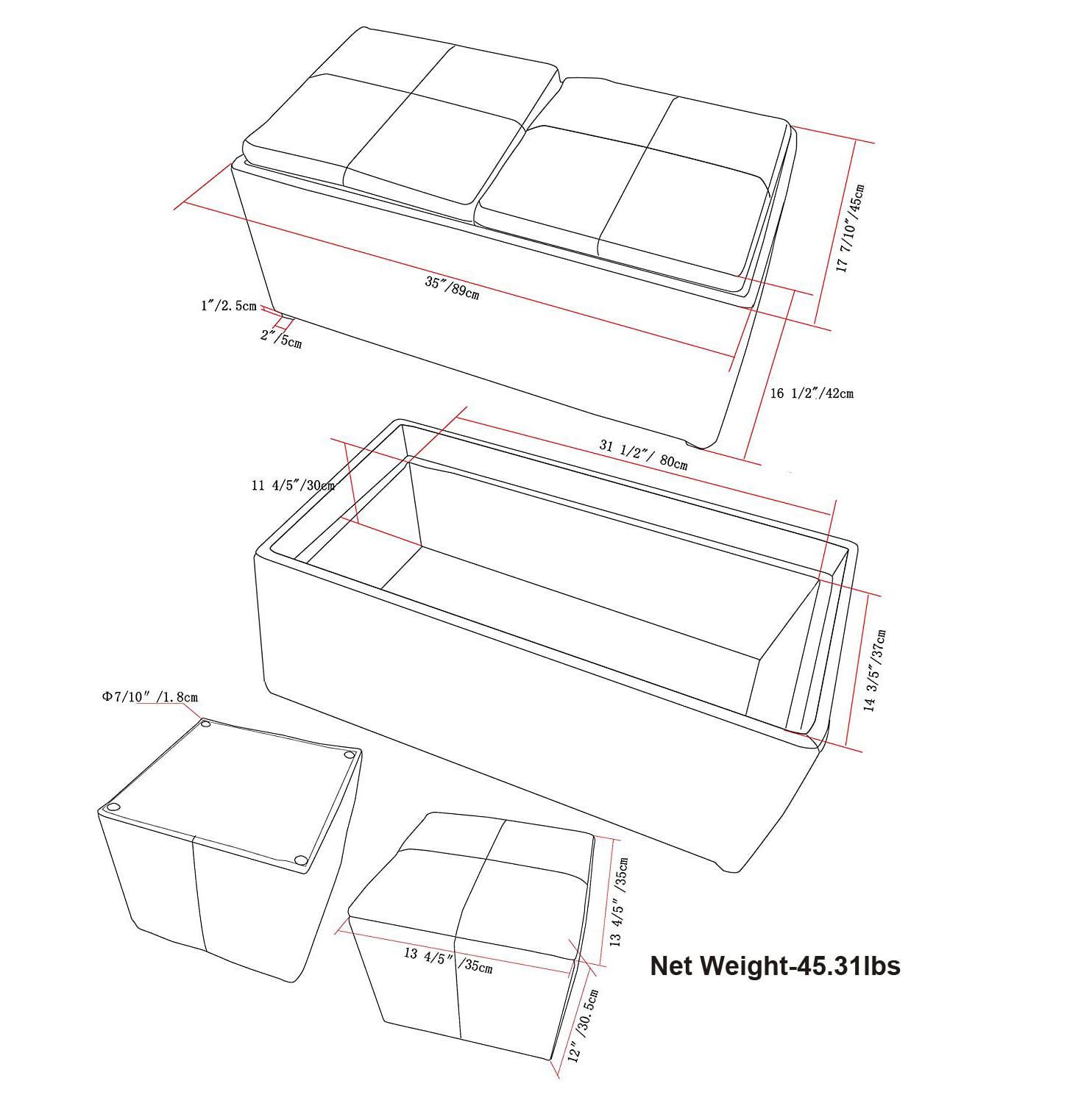– Features a 5 piece ottoman set with 1 large rectangular ottoman and 2 smaller ottomans, large interior storage space two flip over serving trays