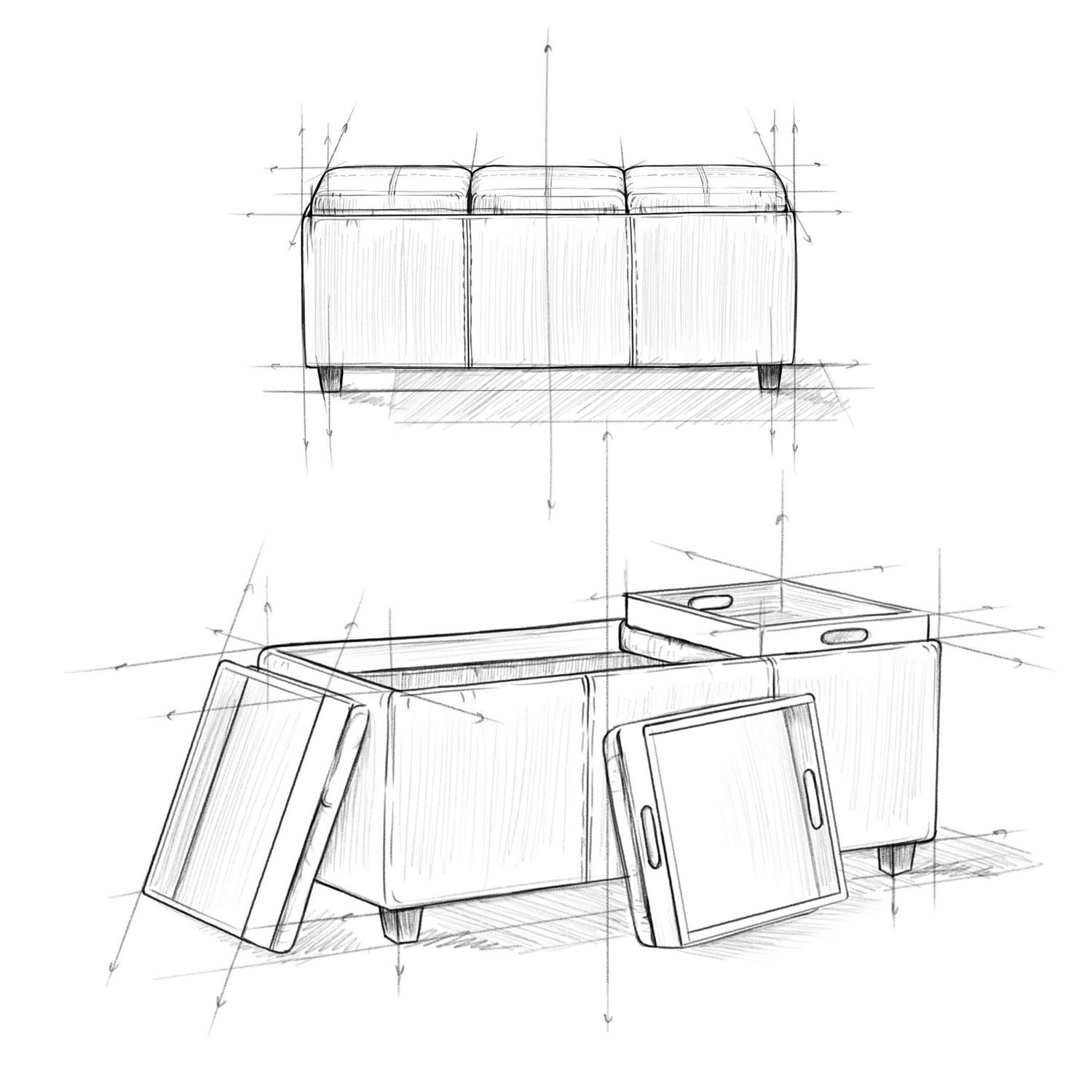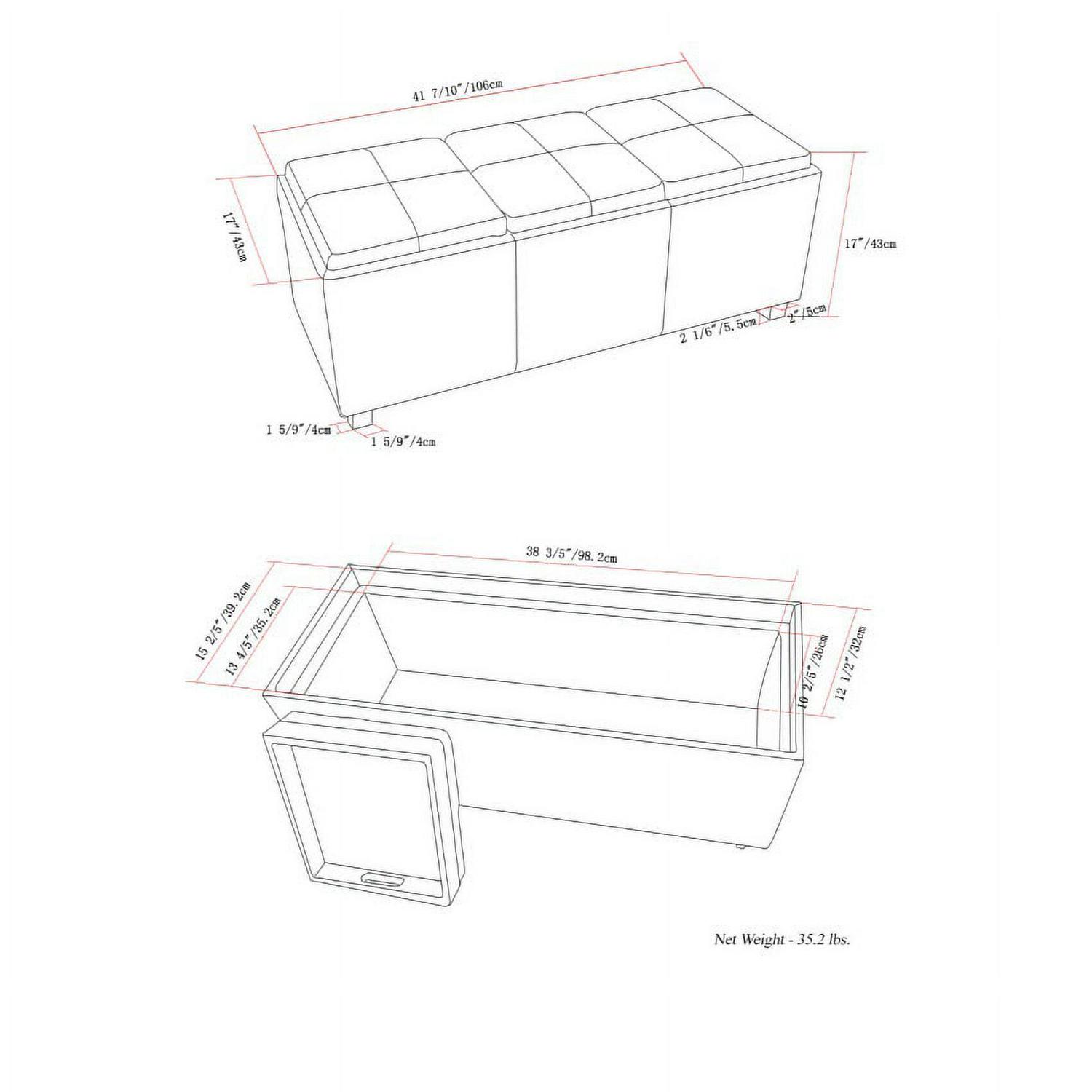 Simpli Home Avalon Extra Large Storage Ottoman with 3 Serving Trays