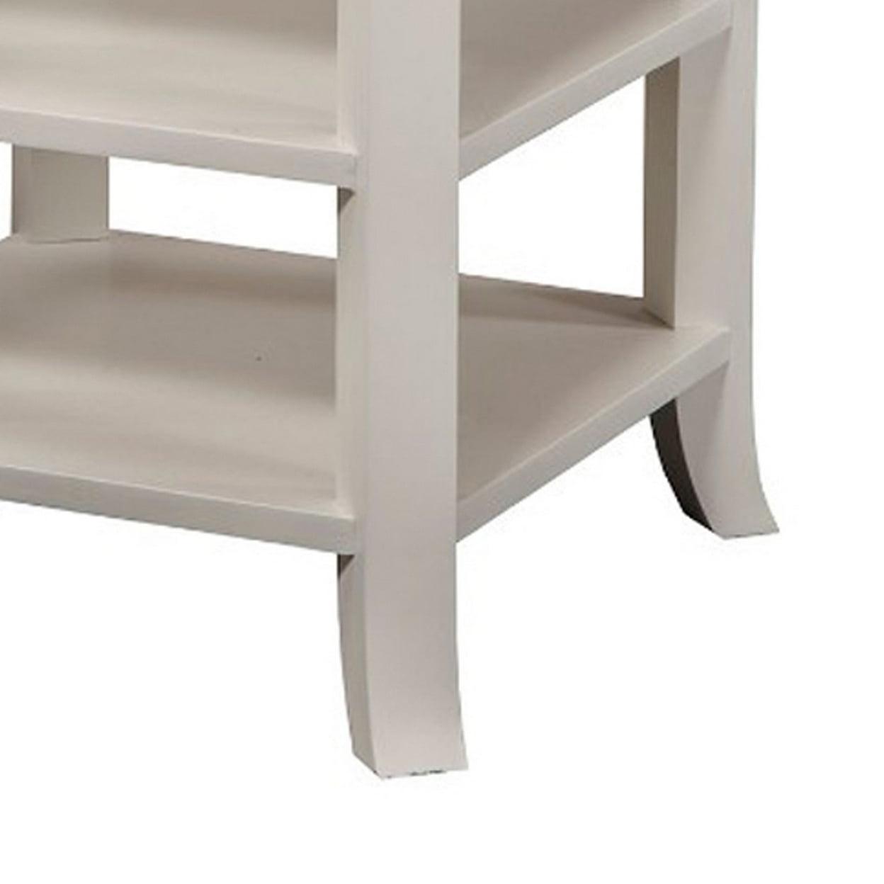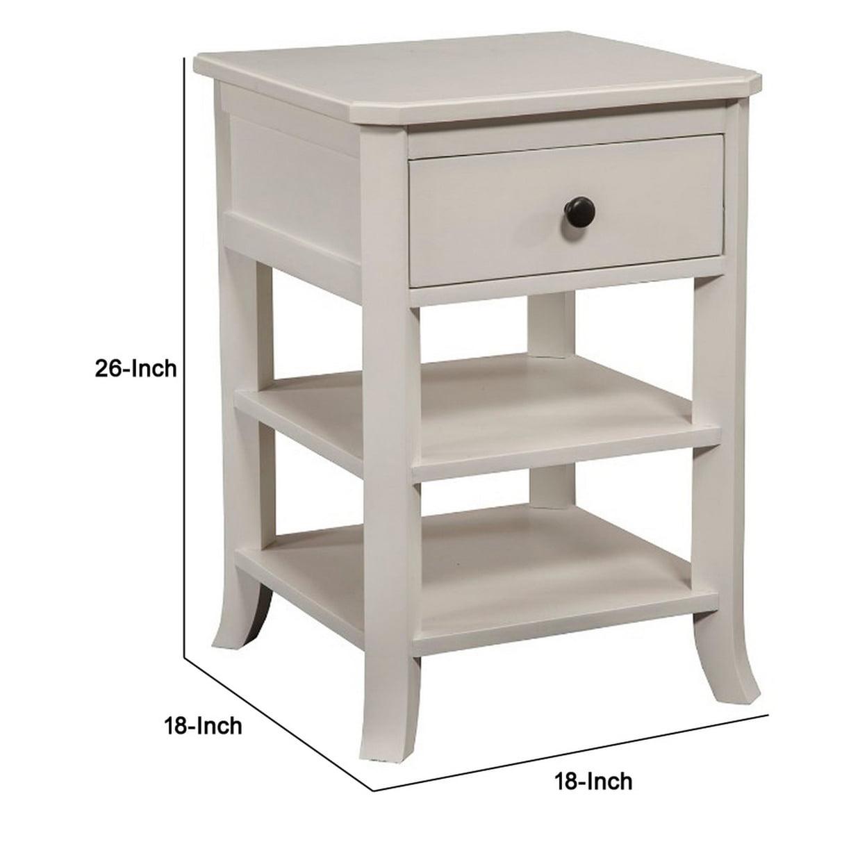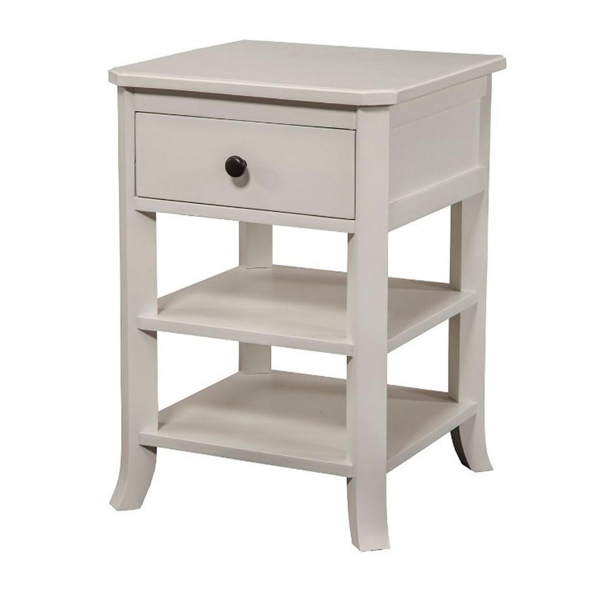 Simply Decorous Mahogany Wood Nightstand, White- Saltoro Sherpi To keep your books, files and other small stuff arranged in fashion, you surely can count on this Nightstand. Crafted from mahogany solids and veneer, the nightstand features a drawer and two open shelves.