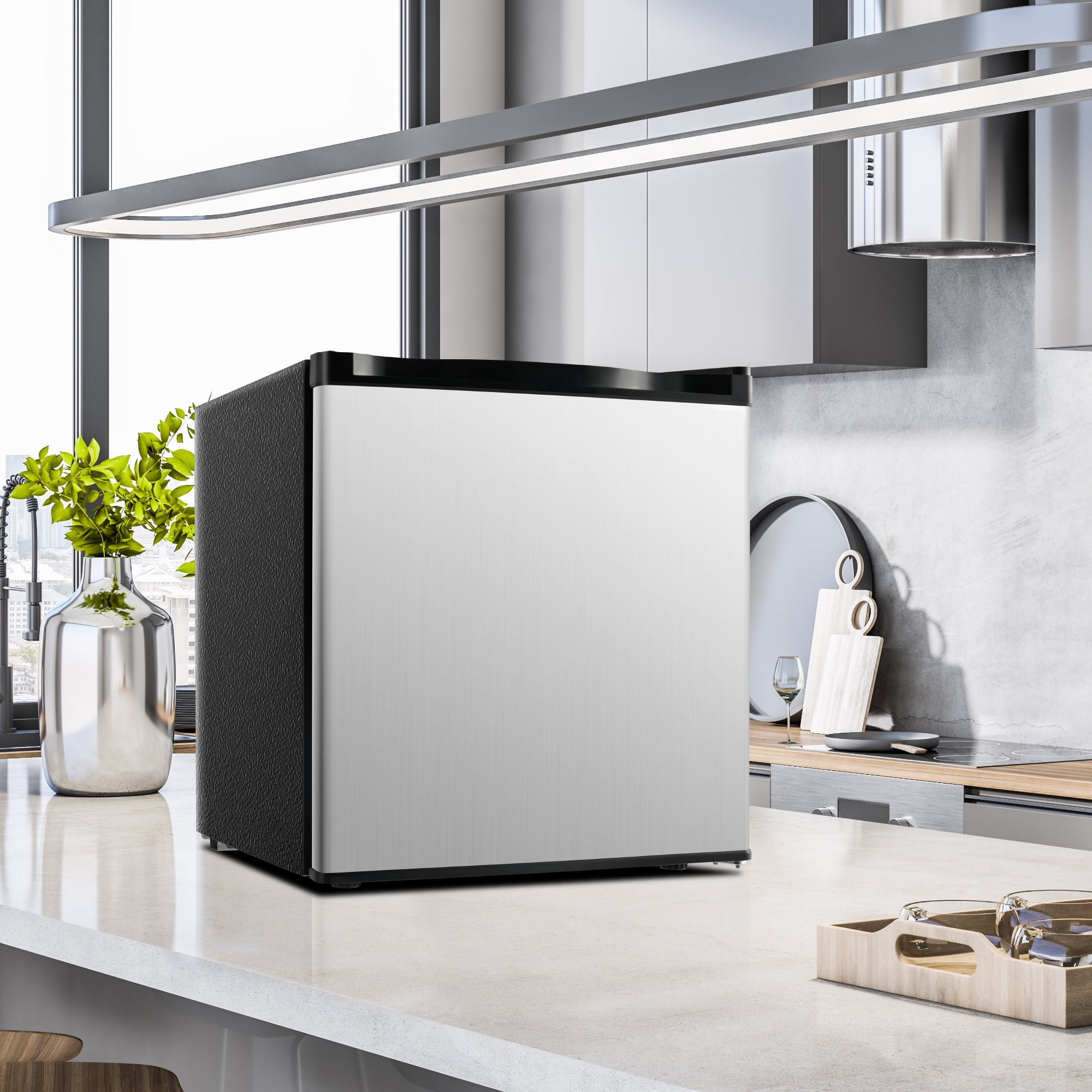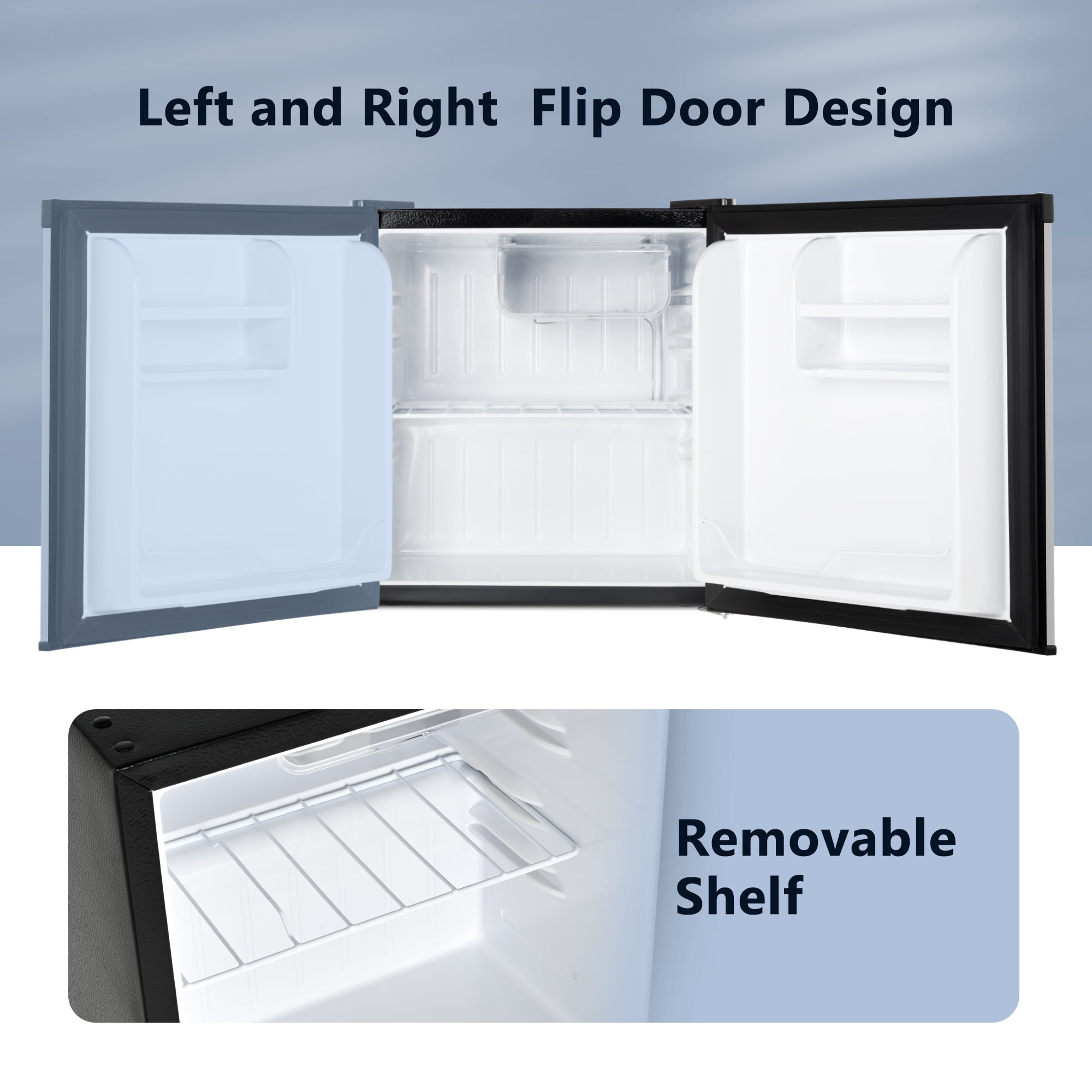 SMALL & CONVENIENT:Featuring a compact design (17.52×18.31×19.61 inches), this mini refrigerator is perfectly sized for placement on a countertop or under a desk, blending seamlessly into any environment. Engineered with both left and right door openings, it’s effortlessly adaptable for various spaces, making it an ideal choice for apartments, dormitories, offices, and bedrooms. FREEZING COMPARTMENT & SLIGHTLY FROZEN AREA:Equipped with a dedicated freezer compartment (1.4 Cu.ft) and a soft freeze section (0.2 Cu.ft), our mini fridge keeps your vegetables and fruits fresh while also providing a space for storing frozen treats like ice cream for short periods. An added benefit is the removable wire shelf that can be taken out to expand the storage area when needed. TEMPERATURE CONTROL & HEAT RETENTION:Boasting a stable temperature control system with a 5-speed adjustable knob (26℉-43℉), this office mini fridge offers a wide temperature range to cover most daily needs. The high-density foam insulation layer effectively minimizes heat transfer, ensuring long-lasting temperature retention within the appliance. ENERGY SAVING & SILENT:This mini refrigerator is designed with a highly efficient, low-consumption compressor, using approximately 0.55 kWh per day to provide optimal cooling without excessive energy use. It operates smoothly and quietly, maintaining a noise level below 38dB, making it suitable for use in quiet environments such as bedrooms and offices. DEPENDABLE ASSISTANCE & GUARANTEE:With years of specialization in this industry, our mini refrigerators for bedrooms are built to last. Should you have any concerns or questions about your purchase, feel free to reach out to us through , and we guarantee a prompt response within 24 hours, ensuring your satisfaction and a delightful experience.