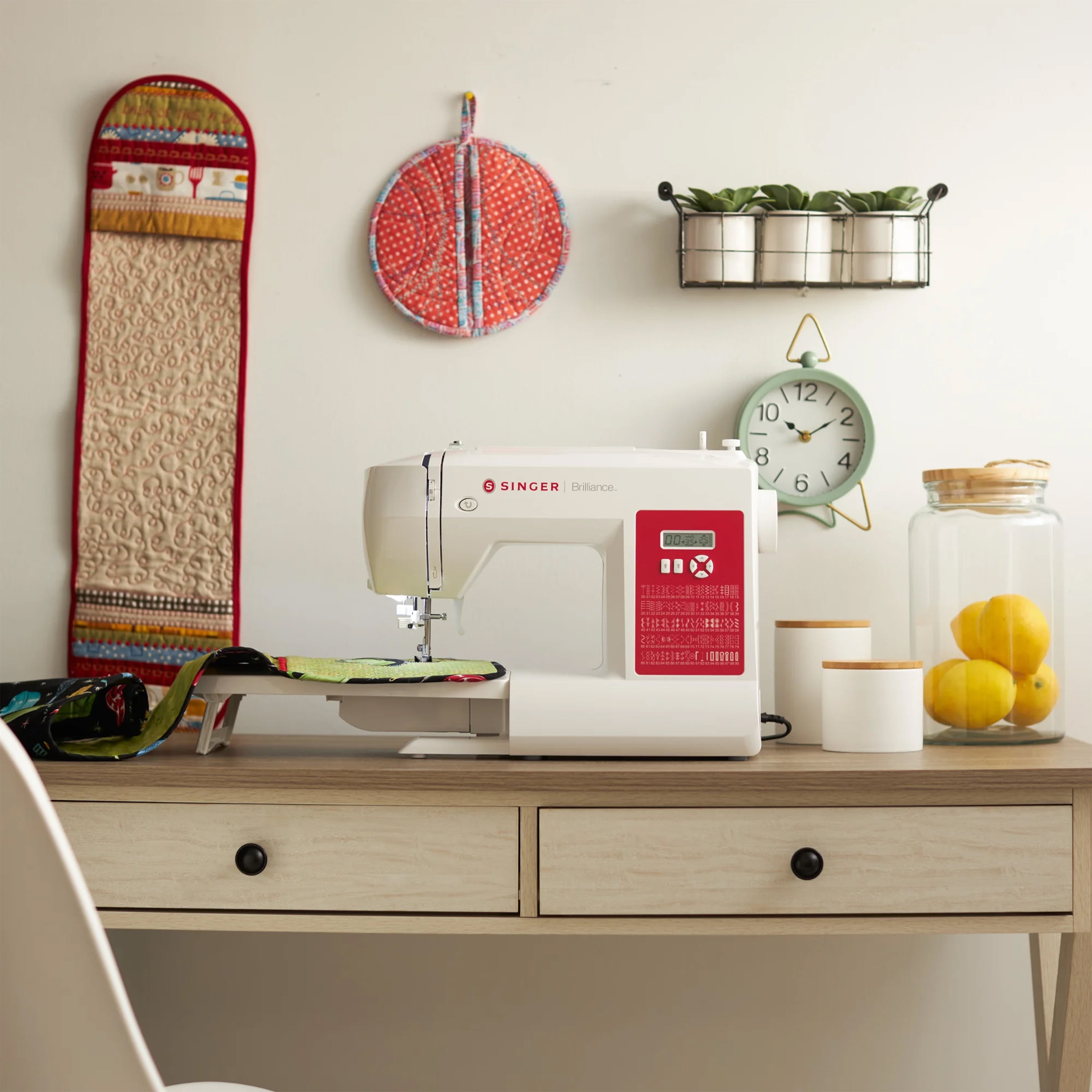 VERSATILE STITCH APPLICATIONS- Offers an impressive 180 stitch applications, including basic, stretch, and decorative stitches. Perfect for sewing, creating, and embellishing everything from fashionable garments to intricate home décor and craft projects, giving you endless possibilities for creativity. CONVENIENT BUILT-IN FEATURES- Includes a user-friendly automatic needle threader that threads the machine effortlessly in seconds and six one-step buttonhole styles. These features deliver consistent and professional results, saving you time and ensuring every project is completed with ease. ENHANCED PROJECT HANDLING- The included extension table easily slides on and off to provide a stable and level sewing surface. This feature is perfect for handling larger projects such as quilts, curtains, or other oversized sewing tasks, ensuring smooth and precise results. CUSTOMIZABLE STITCH SETTINGS- Features adjustable stitch length and width options that can be controlled using intuitive touch buttons. These settings allow you to personalize the appearance of every stitch, making it ideal for techniques like applique, basting, and decorative finishes. DURABLE METAL FRAME CONSTRUCTION- Designed with a heavy-duty metal interior frame, this sewing machine offers superior durability and long-lasting performance. It provides stability during operation, making it perfect for tackling a variety of sewing techniques and materials. COMPACT AND VERSATILE FREE ARM- The free arm is easily accessible by removing the storage compartment, making it simple to sew smaller projects. This feature is ideal for hemming pants, sewing sleeve cuffs, and working on other tubular items with precision and ease. USER-FRIENDLY LCD SCREEN- The clear LCD screen allows you to easily select and adjust your stitch options, displaying your chosen stitch as well as its length and width settings. This makes it easier than ever to achieve professional results on every project. WIDE RANGE OF ACCESSORIES INCLUDED- Comes with eight presser feet, including All-Purpose Foot, Zipper Foot, and Buttonhole Foot, along with essential tools like needles, bobbins, a darning plate, and more. These accessories equip you to handle a variety of sewing techniques effortlessly. HIGH-SPEED STITCHING CAPABILITY- Delivers professional-level speed with up to 750 stitches per minute. This high-speed performance allows you to complete sewing projects faster, without sacrificing stitch quality, for efficient and satisfying results. EXTRA HIGH PRESSER FOOT LIFTER- Provides additional clearance to accommodate thick fabrics or multiple layers, making it perfect for sewing quilts, heavy garments, or specialty materials. This feature ensures ease of use even with challenging projects.