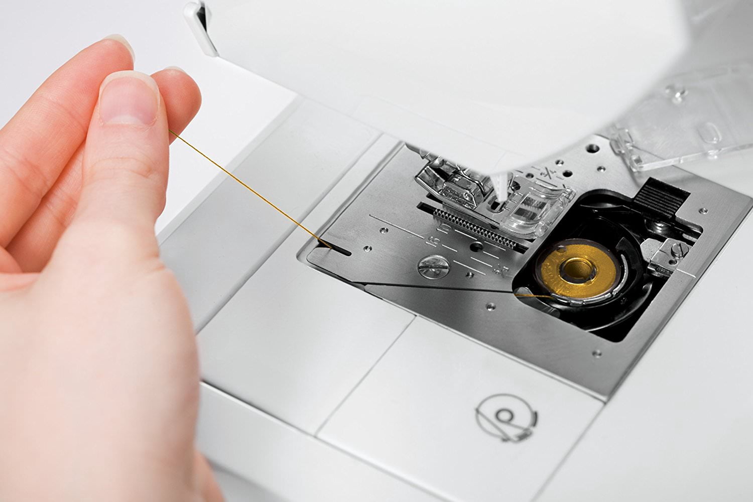 Electronic Quilting and Sewing Machine With just a simple push of a button you have selected the stitch and the optimum settings for length, width, balance, pressure and tension. The extension table and bonus quilting feet allow for ultimate creativity! Quick & Easy Threading System! Drop & Sew™ Bobbin System 2 StayBright™ LED Lights Two lamps illuminate the sewing surface. Long-lasting bulbs stay cool. 98 Built-In Stitches A large variety of stitches for construction, embroidery, fashion sewing, quilting, heirloom, crafts, home decorating and decorative sewing. 8 Essential, 6 Stretch, 77 Decorative, 7 Buttonholes 6 Fully Automatic 1-Step Buttonholes Choose from six different one-step buttonhole styles. 1 Endless Buttonhole Allows you to create buttonholes with infinitely long sides. Extension Table Included Expands your sewing surface Drop Feed Use this setting for stippling, button sewing and more! Programmable Needle Up/Down Electronic Twin Needle Control Twin needle sewing creates two parallel rows of stitching, adding a decorative touch to any project. With the electronic twin needle control, stitches are automatically adjusted for twin needle sewing in a snap. Automatic Tension This system ensures stable stitch quality Automatic Presser Foot Pressure Control Extra-High Presser Foot Lifter Offers more clearance Free Arm Provides professional results and easy access to cuffs, collars, pant hems and other difficult-to-reach areas Automatic Stitch Length & Width Automatic Center Zigzag Taper When tapering with the zigzag stitch, the stitch tapers to the center, not the left or right Automatic Tacking Stitch Function Tie-off decorative stitches with just a push of a button. With 4 tiny tacking stitches the start and end of the pattern is reinforced. Automatic Tie-Off Function This function reinforces the start and end of seams for stronger stitching. Automatic Reverse Push the conveniently located Automatic Reverse Button to sew in reverse and reinforce the stitch. Sewing Speed With a maximum sewing speed of 750 stitches-per-minute DC Motor Provides instant start up and stop with no casting, for accurate and precise stitch placement Automatic Bobbin Winding Clutch Needle bar automatically disengages when winding the bobbin, making bobbin winding safer 6-Segment Feeding System with Box Feed This is a specially designed feed dog that ensures the fabric is picked up and supported from the front of the presser foot to the rear. Box Feed is a feed dog motion that moves the feed dogs in a box motion, rather than the historic arc motion. Heavy Duty Metal Frame. This rigid support holds all the mechanisms in perfect alignment for perfect, skip-free sewing. Direct Drive The needle bar is geared straight from the motor, rather than from a drive bar across the machine. Thread Cutter Located on the machine for precise thread cutting Snap-On Presser Feet Easily change presser feet without a screwdriver Soft-Sided Dust Cover Keep the sewing machine free of dust and debris while not in use On Board Storage Have easy access to accessories while sewing Thirteen Needle Positions 25-Year Limited Warranty 25-year limited warranty including 25 years on head, five years on motor and electronic components, and one year on belts, bulbs, and attachments. FREE Accessories Included All-Purpose Foot, Zipper Foot, Buttonhole Foot, Blind Hem Foot, Satin Stitch foot, Pack of Needles, Bobbins (Class 15J), Thread Spool Caps, Auxiliary Spool Pin, Spool Pin Felt, Screwdriver, Seam Ripper/Lint Brush, Soft-Sided Dust Cover, Quick Start Guide, Machine Intro DVD, Instruction Manual, Power Cord, Foot Pedal