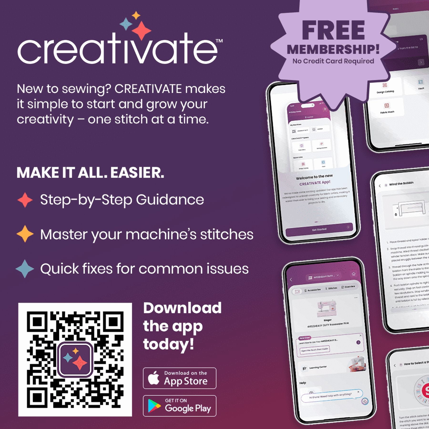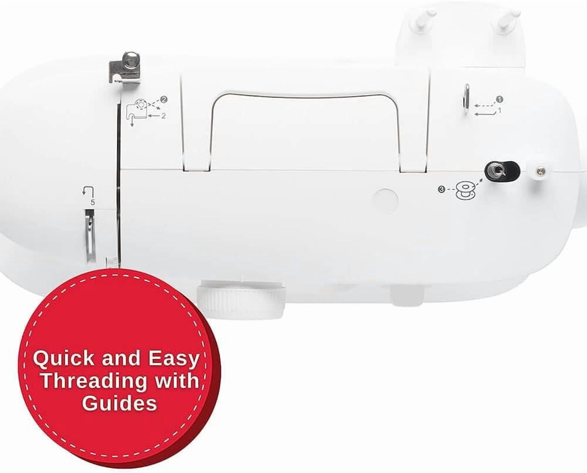 57 Stitch Applications: Sew garments, piece quilts, create crafts or do simple mending with the reliable SINGER® M1500 sewing machine. Includes stitches for key sewing techniques: straight stitch, zigzag, blind hem stitch, multi-step zigzag, decorative scallop and a four-step buttonhole. Easy Stitch Selection: Stitches are clearly displayed on the Stitch Selector Dial. Just turn the dial to select your stitch. Preset Stitch Length And Width: Choose the stitch you want to sew, and you’re ready to go. Stitch length and stitch width are preset for you, eliminating guesswork – perfect for the beginner! Four-Step Buttonhole: Buttonhole sewing is a simple four-step process, clearly marked on the Stitch Selector Dial to help you make the buttonhole the size you need for your project. Quick And Easy Threading: Simple-to-follow threading guides for winding the bobbin and threading the upper thread are conveniently marked directly on the machine. Full Metal Frame: This internal rigid metal support keeps your machine stable and helps ensure long lasting durability. Front-Loading Bobbin: The machine uses a SINGER® Class 15 (transparent style) bobbin. Just place the bobbin into the bobbin holder, draw up the bobbin thread and you’re ready to sew. Staybright Led Lighting: Long lasting LED lighting provides bright illumination of the sewing area to help eliminate shadows. Free Arm: Slide the Removable Storage Compartment off the machine to access the free arm for sewing cuffs, collars, trouser hems and more.