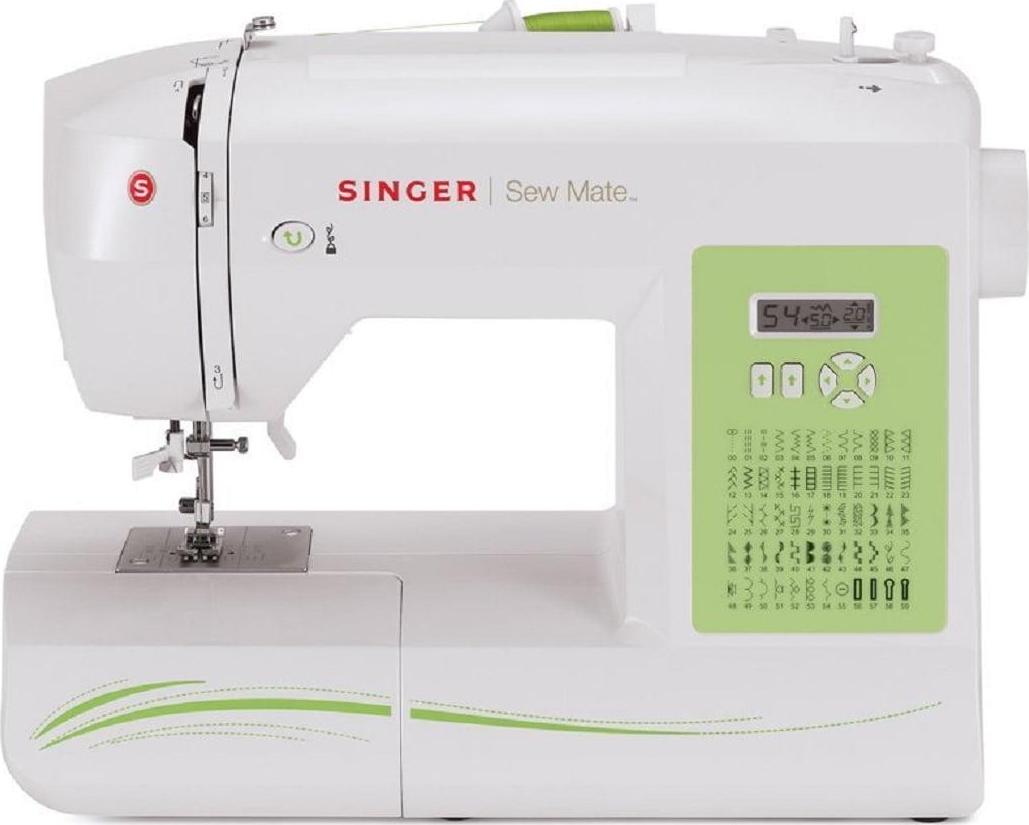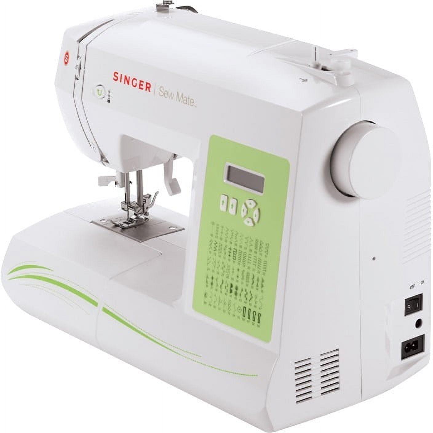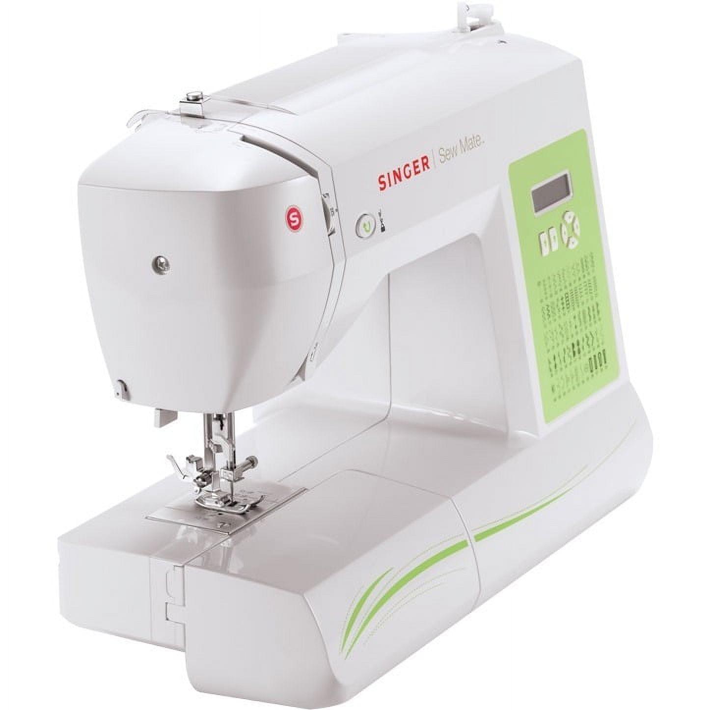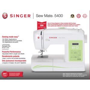The SINGER Sew Mate 5400 computerized sewing machine is full of features to get your sewing started faster, while adding a professional touch to your projects. With 154 stitch applications, you will have the right stitch for any fabric! Customize stitches to personalize projects using the adjustable stitch length and stitch width, viewable on the LCD screen. Enjoy Touch Button Stitch Selection, and watch the LED lighting illuminate your sewing space as you sew. Sew buttonholes in one easy step with consistent results every time. There are four different styles of buttonholes to choose from two styles of the basic bartack style for projects like dresses, shirts or home décor and two keyhole styles for menswear and outerwear. Take off the Removable Storage Compartment to access the Free Arm, which makes it easy to sew trouser hems and cuffs or around difficult-to-reach areas like children s clothing. Thanks to a built-in needle threader, you ll be ready to start sewing in a breeze. You will also receive three essential presser feet with your machine. SINGER ensures that you have everything needed for a great start on your sewing journey! Whether you re just starting out or you re a more experienced sewist, the SINGER Sew Mate 5400 computerized sewing machine will be your go-to sewing tool to create and embellish fashions, home décor and much more!