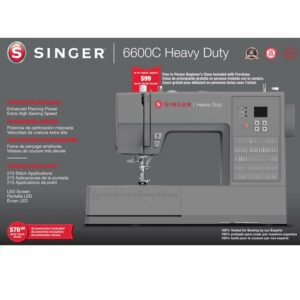 The SINGER HD6600 Heavy Duty Computerized Sewing Machine offers 215 stitch applications including 6 automatic 1-step buttonhole styles. This machine is a true workhorse with powerful piercing power for thick fabrics or multiple layers and extra-high sewing speed. A top drop-in bobbin for easy threading and viewing and an automatic needle threader that quickly threads the machine making this the perfect machine no matter your skill level.