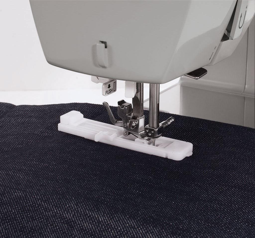 – EXTRA HIGH PRESSER FOOT LIFT: Offers more clearance under the presser foot, which is needed when placing multiple layers underneath it.