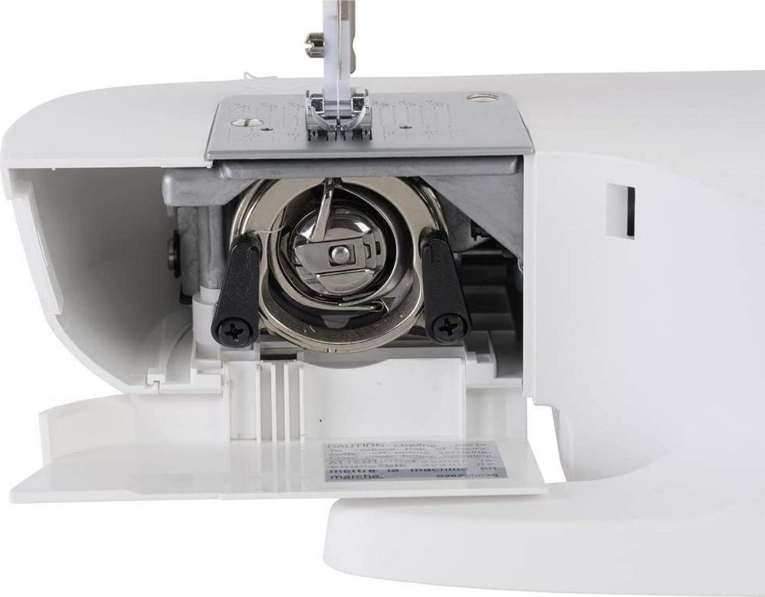 – Front-Loading Bobbin: The machine uses a SINGER Class 15 (transparent style) bobbin. Just place the bobbin into the bobbin holder, draw up the bobbin thread and you re ready to sew.