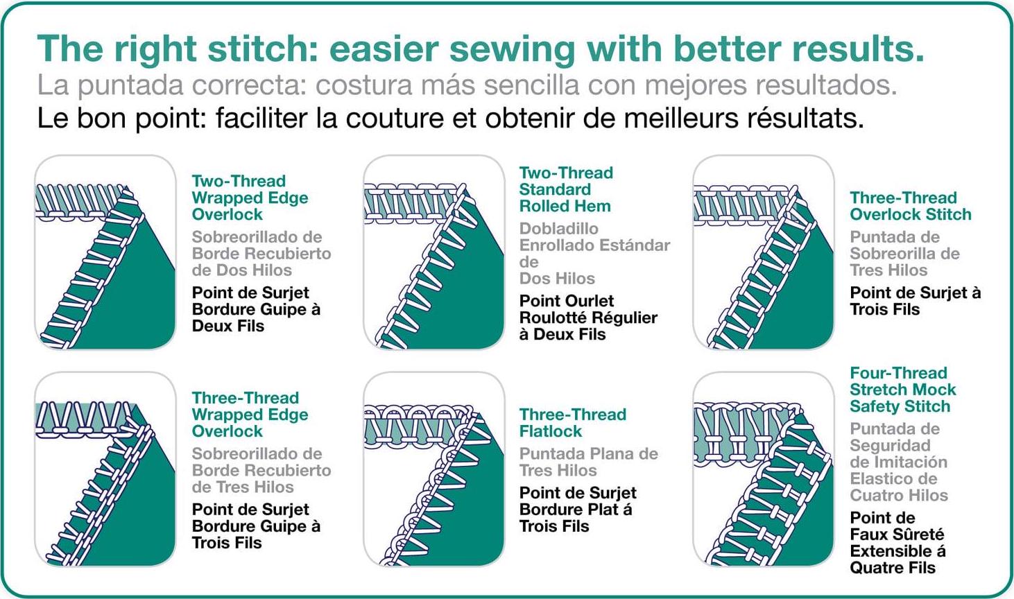 - Save time with hems, seams and seam finishing