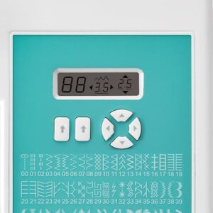 – LCD Screen (+)LCD screen clearly displays your selected stitch as well as stitch settings for length and width.