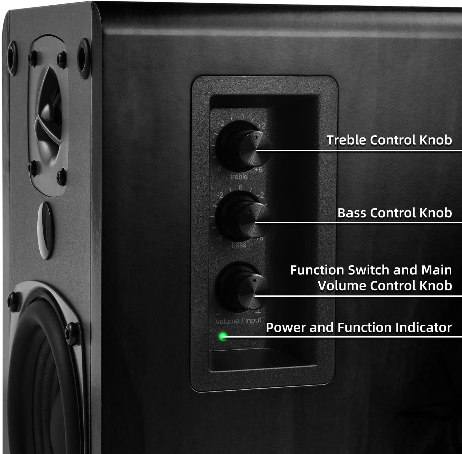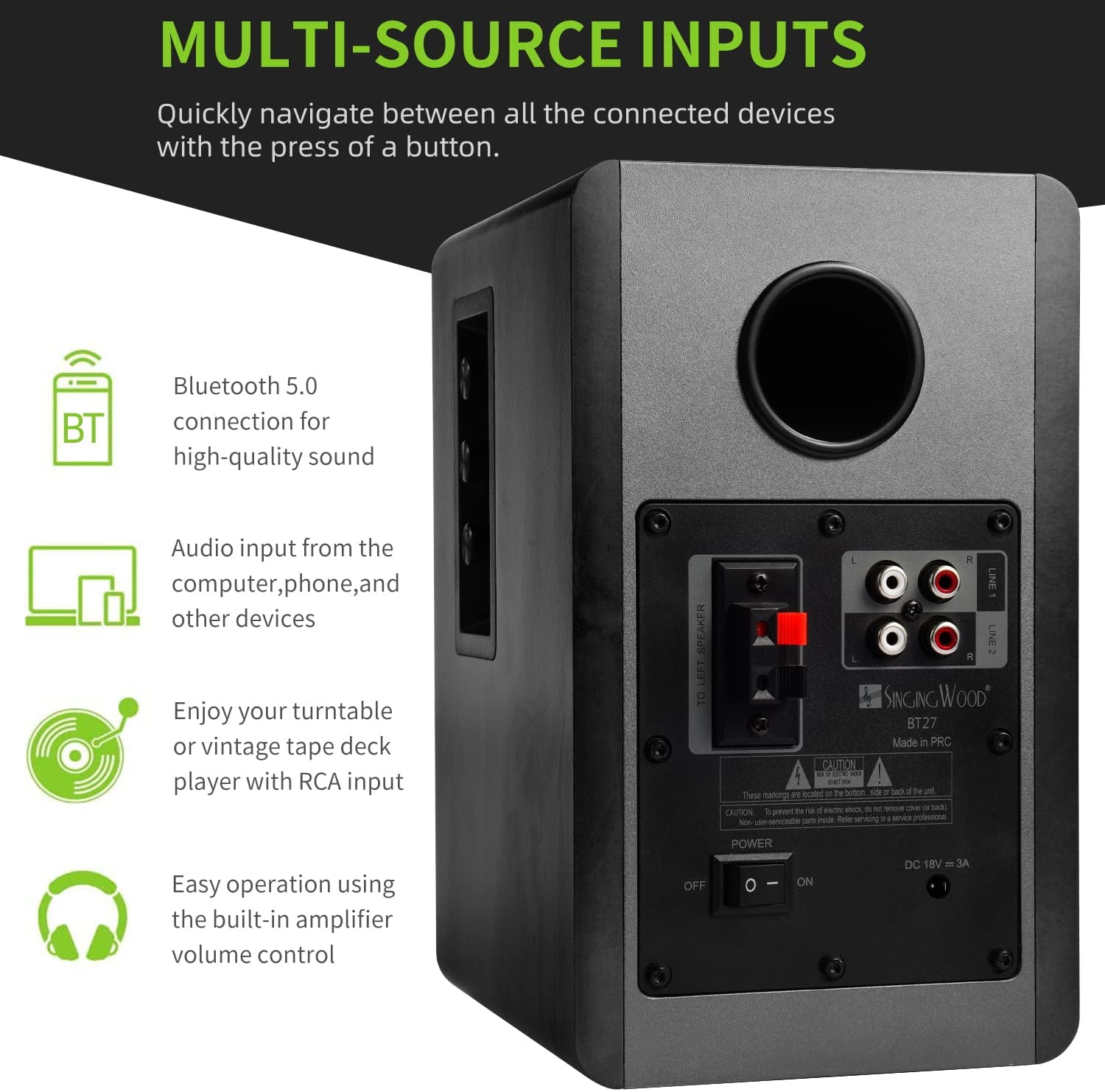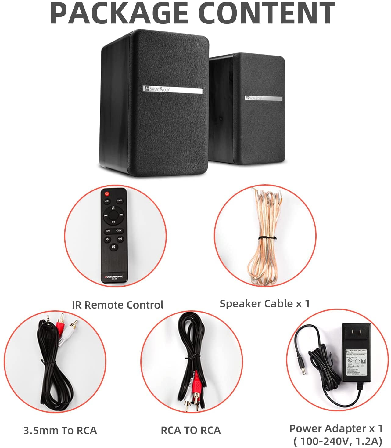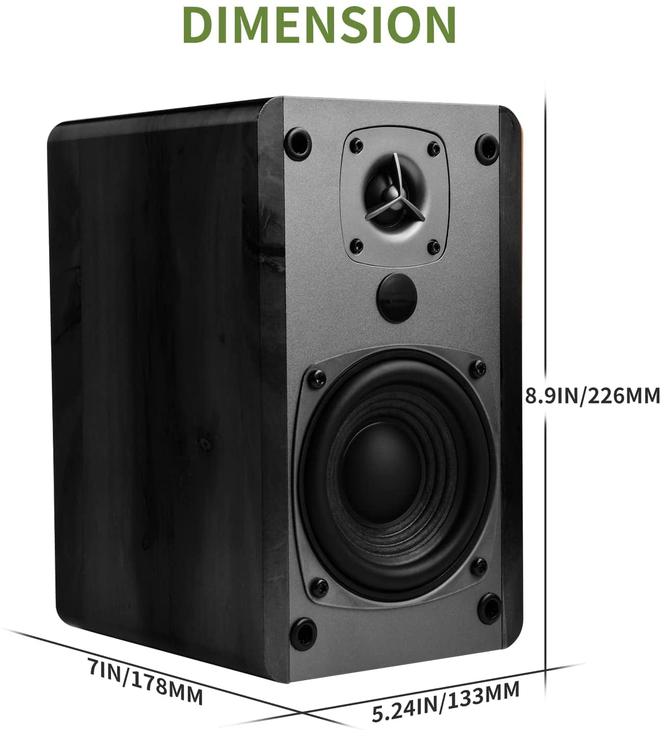 【POWERED BLUETOOTH 5.0】 Delivers incredible audio sound from your smartphone, tablet, PCs, TVs, and any Bluetooth device, perfect hassle free true wireless connection. 【2 x LINE IN INPUT】 Easy wire connection up to 2 devices with AUX input at the same time, no plugging and switching needed. 【CLASSIC WOODEN ENCLOSURE】 Stylish design speakers made with high quality MDF wood finish to apply to any home decor, featuring built-in amplifier, 4″ full range bass driver, and 0.75″ silk dome tweeter for high performance sound reproduction. 【FEATURES】Allows volume control and switching inputs at your fingertips via remote control. You can also make an advanced sound adjustment with the bass and treble controller located on the side of the main speaker. Built in Digital Sound Processor(DSP) and Dynamic Range Control(DRC) provide enhanced audio performance. 【SINGING WOOD ADVANTAGE】America’s leading audio brand based in California, 24 months warranty and easy to reach after-sales customer support team always be with you when you are in need. We guarantee high quality parts and labor warranty service for two years with lifetime technical support.