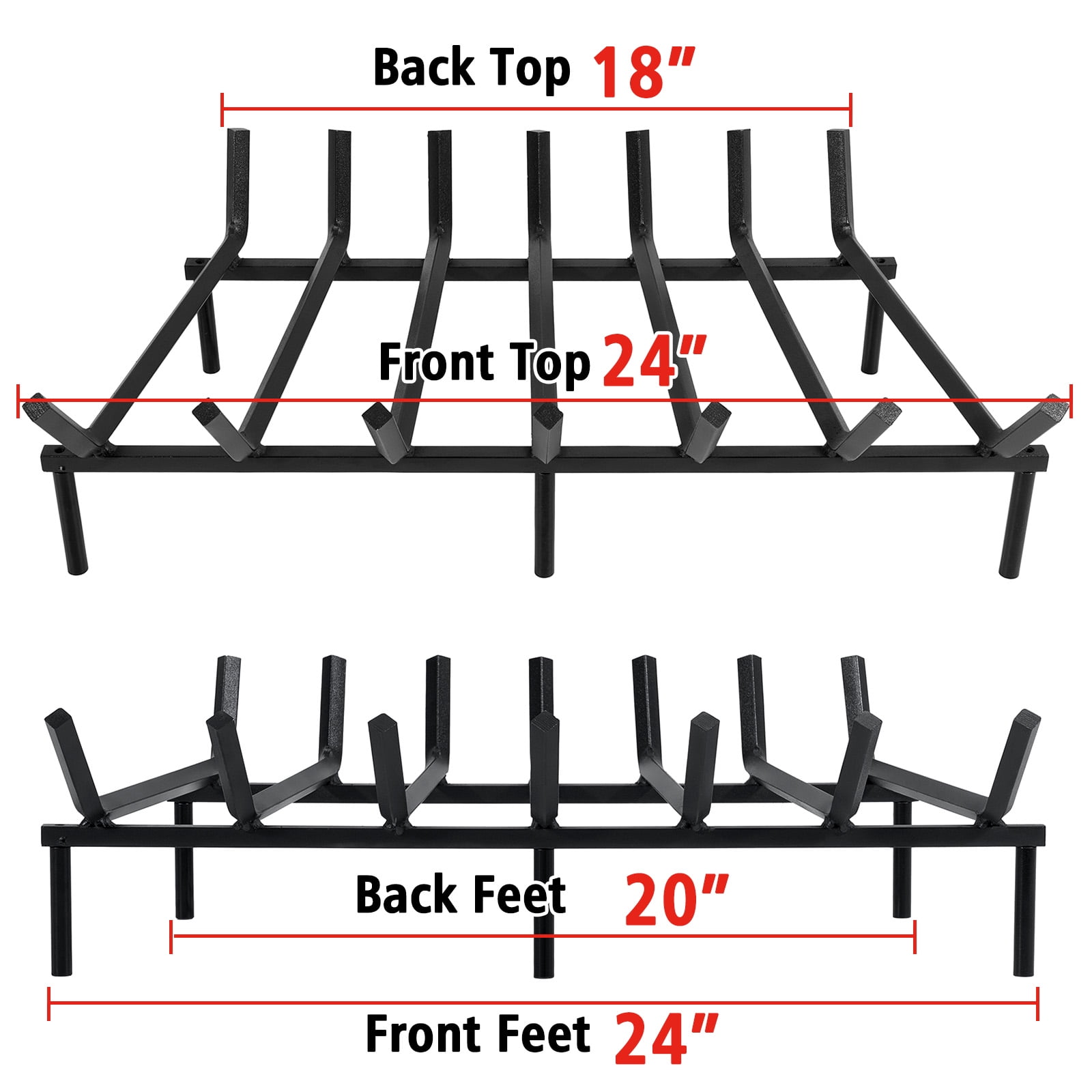 Fireplace Grate Cast Iron 24 inch, Steel log Grate Holder Better Daily Fire Burning Support The fireplace grate 24 inch comes with 4 solid thick side legs & extra 2 solid thick middle legs, designed to prevent any sagging of the structure. This fireplace log grate is perfect for both indoor decorative wood burning fire places and outdoor fire pit grate. Heavy Duty Steel Construction The fireplace log holder has 7 steel rods and 6 steel legs that are constructed to last. V-shape fire wood holder make it easier to light a fire and help keep wood secure. 4 inch inteval space between the fire grates and the floor, lift the firewood off the chimney floor and hearth for better airflow and visual appeal. Sturdy & Durable Cast iron fire grates for fireplace are made of thick and solid 1/2 inch square steel bars with black high temperature paint finish. And crafted with good welds at the joints. Perfect fireplace accessories for your daily firewood burning. Compact Design No Assembly Required. Overall size: 24″ W x 14.5″ D x 7″ H. Space-saving structure, it’s convenient to bring this fireplace log grate to your indoor fireplace chimney, outdoor fire pits, backyards patios wood burning stoves, etc. Specifications: Material: Cast Iron Size: 24″ W x 14.5″ D x 7″ H Item Weight: 15.9 lbs Color: Black