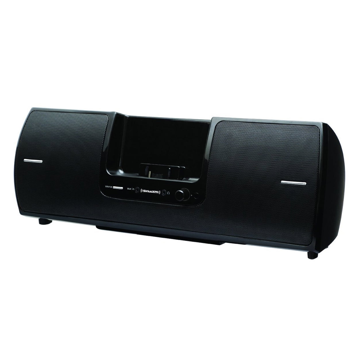 SiriusXM SXSD2 Portable Speaker Dock Audio System for Dock and Play Radios (Black): Enjoy exceptional sound quality with full audio range provided by a 2.1 system with separate tweeters, midrange speakers and a powerful subwoofer that delivers hard-hitting bass response Stylish and renewed design is an elegant addition to any home or office Conveniently take SiriusXM with you wherever you go using the concealed fold-up handle and built-in antenna cradle with cable storage Plug into an available AC outlet or listen anywhere with batteries (requires 8 D-cell batteries, sold separately) Operate both the portable speaker dock and your XM radio stereo system using the included remote control Connect MP3 players and other audio devices via the Aux-In jack (Aux-In cable sold separately) Listen privately using the headphone jack Compatible with Onyx Plus, Onyx EZ, Onyx, Edge, Stratus 7, 6, 5, 4, Stratus, Sportster 5, Star mate 8, 5, 4, 3, XpressRCi, XpressRC, XpressR, Xpress, XpressEZ Includes: SiriusXM portable speaker dock, remote control, indoor/outdoor antenna, AC power adapter and radio dock adapters Satellite radio sold separately