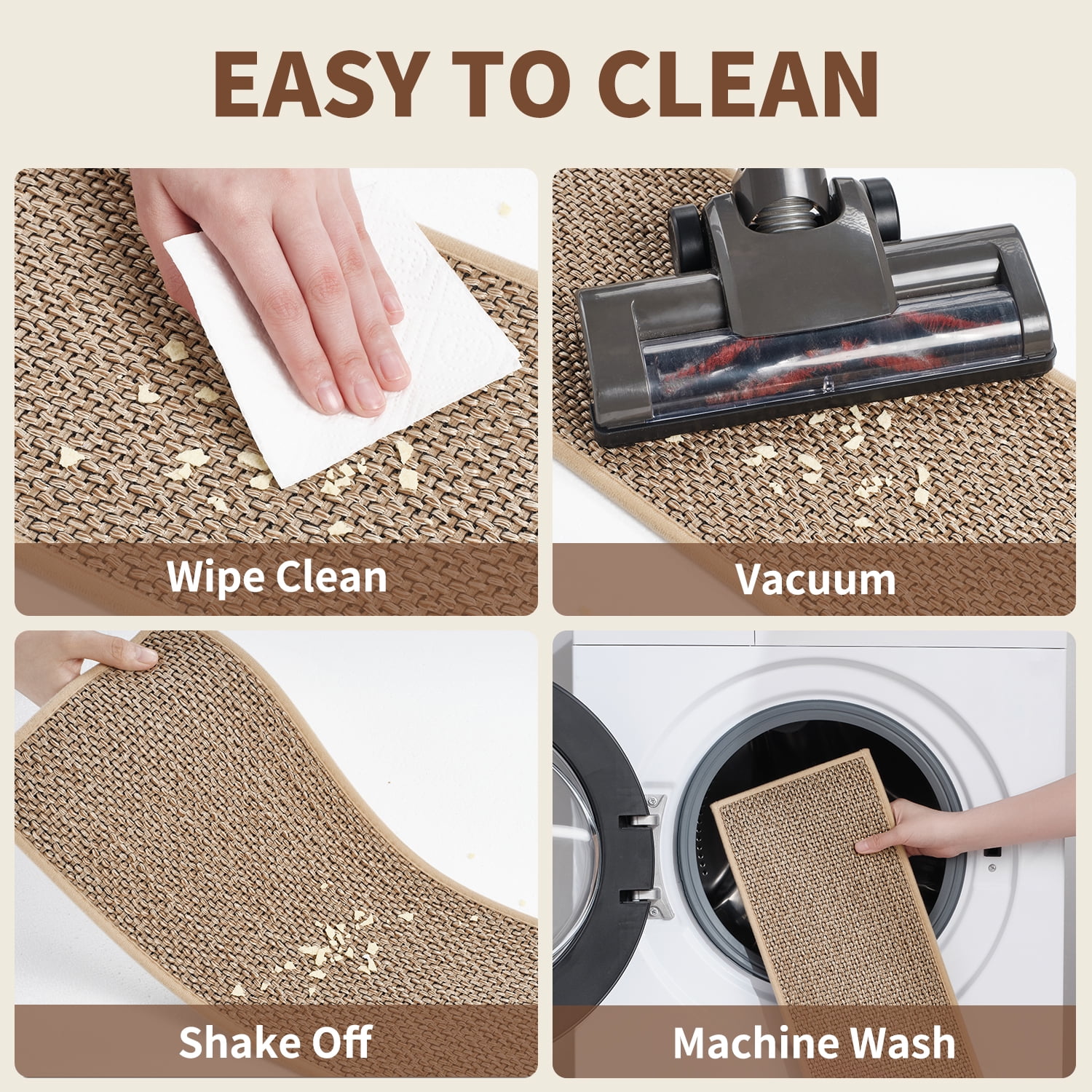 Non-slip rubber backing stair treads for wooden steps Easy to install: no need to peel and stick, no extra tape required Durable and reusable; can be removed without damaging stairs Braided weave design and attractive appearance will refresh your space Comfortable meterial, soft to the touch and step, even for bare feet Easy to vacuum for daily cleaning, machine washable for deep cleaning Reduces noise while walking on stairs and creates a warm atmosphere Set of 15 stair treads, each measuring 8 x 30 x 0.35 inches Neutral color coordinates with almost any decor: farmhouse, boho, modern, or neutral Great for Home steps, kitchens, restaurants steps, hallways, basement, offices steps, hotels steps Clean steps first before putting these step treads down Machine wash in cold water, gentle cycle
