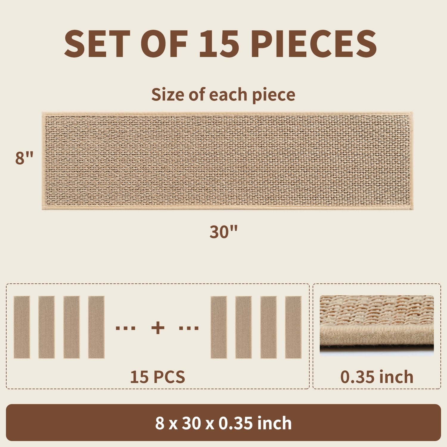 SIXHOME Stair Treads 15 Pack 8″x30″ for Wooden Steps Braid Weave Non-Slip Staircase Indoor Comfort Rubber Backing Washable Runners Kids Dog-Friendly Treads Mats Set Beige