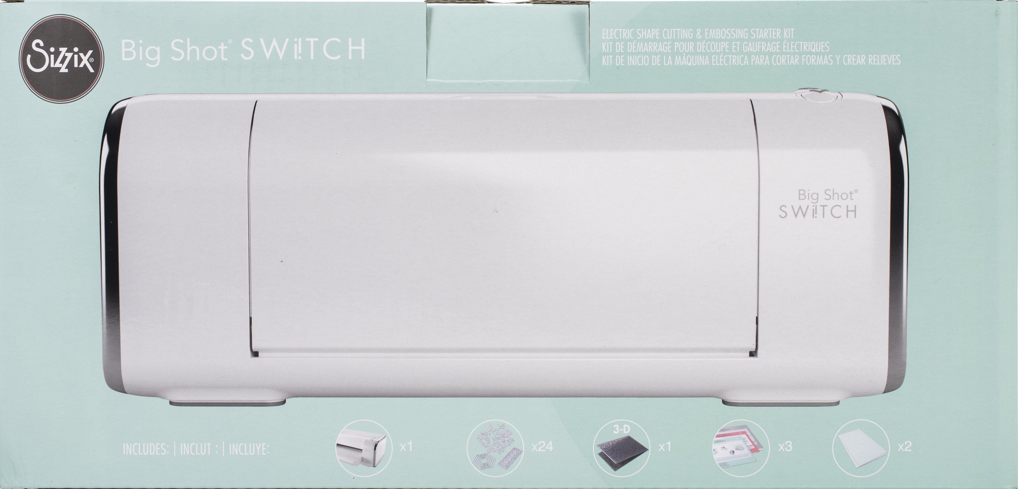 Advance your makes with the Big Shot Switch Electric die-cutting machine! This contemporary high-gloss machine with stylish chrome accents has a simple two button system and automatic feed and reverse feature, empowering you to effortlessly die-cut at the touch of a button. This 17.5x8x9 inch package contains one machine, one pair of cutting pads, one platform, one Adapter A, one Adapter B, one instruction booklet, 24 Thinlits Dies and one 3-D Textured Impressions Embossing Folder. Imported.