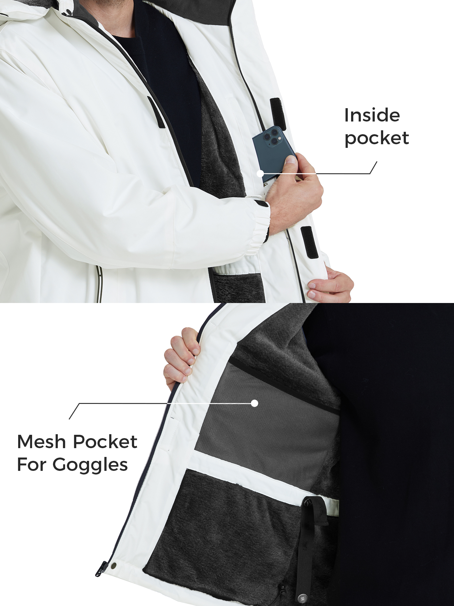 Skieer Men’s Ski Jacket Waterproof Winter Snow Jacket Warm Cotton Padded Raincoat White M