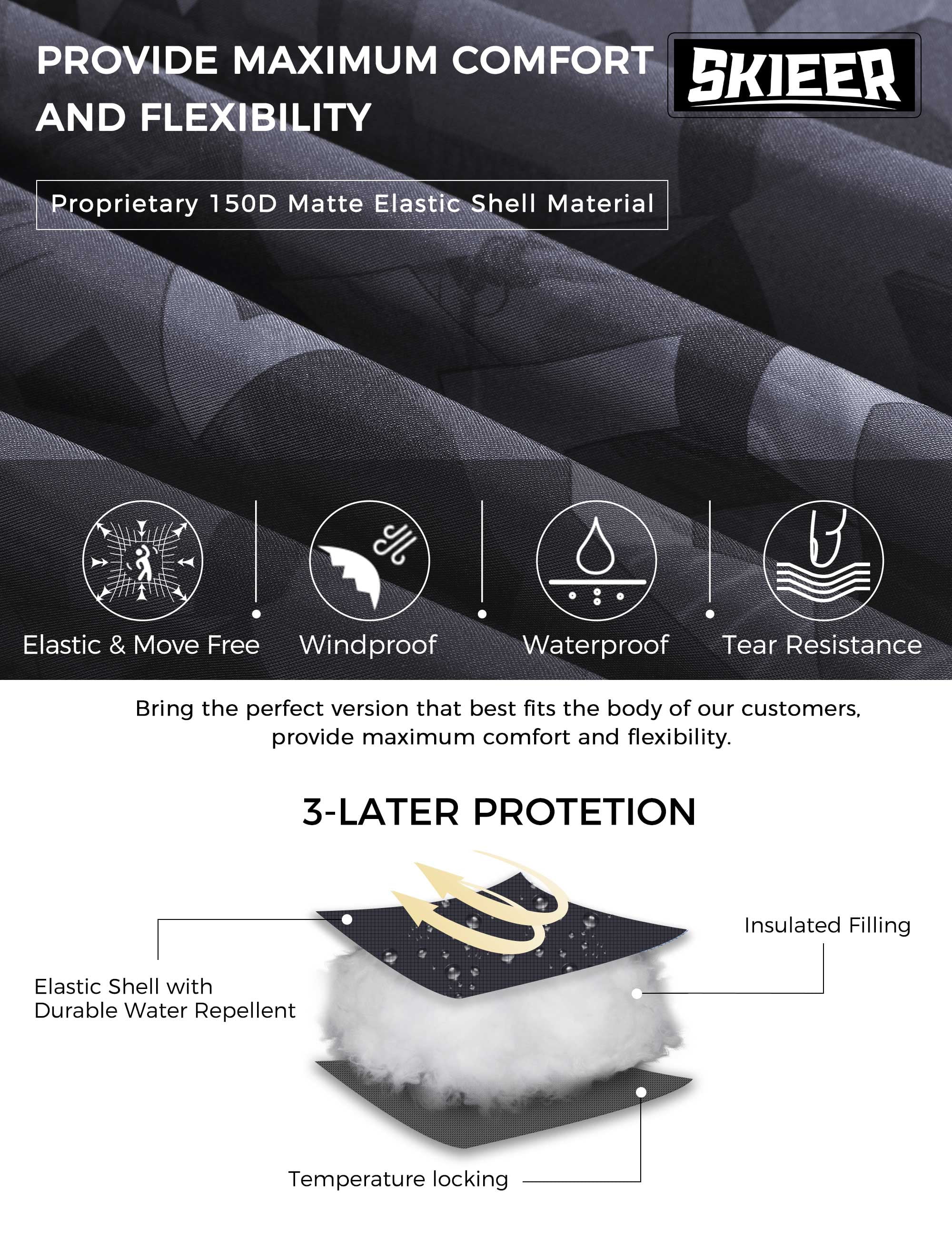 Skieer ski jacket for men is a trustworthy companion for all your outdoor adventures in cold weather. For outdoor enthusiasts seeking a blend of functionality and style, look no further than this men’s winter waterproof snow jacket. Offering unparalleled protection, this warm winter jacket for men is the ultimate choice. Crafted from high-quality waterproof and windproof fabric, this men’s winter coat is well-suited for various outdoor activities like skiing, snowboarding, and hiking. With its soft and cozy fleece lining, you’ll stay warm and comfortable even in the harshest weather conditions. Furthermore, this men’s snowboard jacket features multiple pockets to securely store all your personal belongings, making it an indispensable companion for all your outdoor adventures.