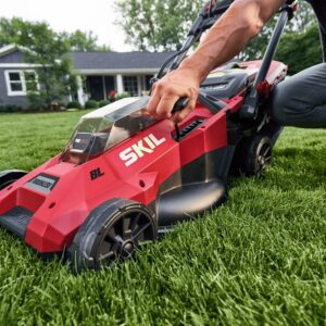 Get industry-leading performance and the power of gas in a cordless mower powered by PWR CORE 20 lithium technology. The digital, brushless motor combined with two PWR CORE 20 4.0Ah lithium batteries provides unbelievable power and cutting performance. You ll have control from start to finish with a push-button start, while the single-lever height adjustment delivers 6 different cutting heights for your desired grass length. The two 4.0Ah PWR CORE 20 Lithium-Ion batteries charge 100% in less than 100-minutes, while delivering 40V performance and allowing for universal battery use across all your SKIL PWR CORE 20 devices. When the task is complete, the telescoping handle folds down completely allowing for vertical storage. This 18-inch cordless lawn mower kit includes two 4.0Ah PWR CORE 20 lithium batteries for maximum run time, and a dual port charger.The included batteries and dual port charger are compatible with all SKIL tools in the PWR CORE 20 family.