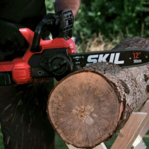 The SKIL 20V 12″ Chain Saw get power and performance in a compact lightweight and powered by PWR CORE 20 lithium technology. Industry-leading technology wraps each cell of the PWR CORE 20 battery for longer run time and battery life. Power through tasks faster with tool-less chain tensioning and auto-lubrication and have peace of mind with the anti-kickback brake. This top handle chainsaw comes equipped with a brushless motor that delivers high cutting speeds to tackle the job at hand. The electric chainsaw kit comes with a PWR CORE 20 4.0Ah lithium-ion battery and charger, plus an Easy Storage Bracket that allows you to conveniently store all your SKIL PWR CORE 20 outdoor equipment with ease. The included battery and charger are compatible with all SKIL tools in the PWR CORE 20 family.
