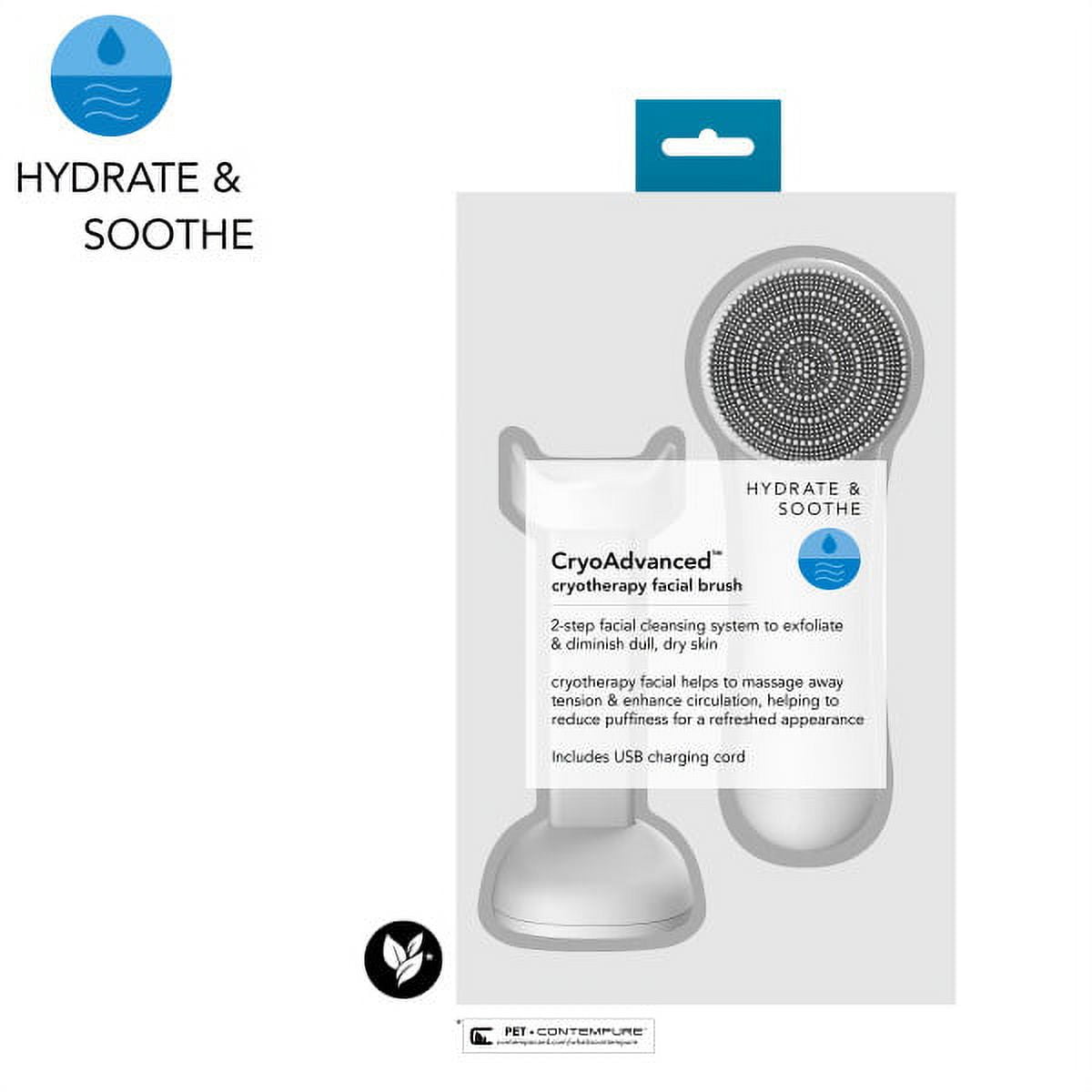 Hydrate and Soothe: Cleanse and exfoliate to reveal skin’s natural radiance in this 2-step system that diminishes dullness. Silicone Brush: Soft bristles are gentle on skin and ultra-hygienic, so the brush head never needs to be replaced. Cleansing with the brush is 2x more effective than washing with your hands. Cool Touch Metal Plate: Provides a stimulating cryo facial that visibly reduces puffiness and reveals a 30% reduction in pore size. Clinically Proven & Dermatologist Tested: Lab studies prove the effectiveness of cryo therapy treatments on dry, dull facial skin. Perfect for All Skin Types: Gentle enough to use as part of an everyday skincare routine. USB Rechargeable and Waterproof: Easy to keep charged with included cord and safe to use with running water at the sink or in the shower. New Stand Design: The brush is suspended above the base to prevent water from pooling. Limited 1-Year Warranty: Built to last and designed for dependability.