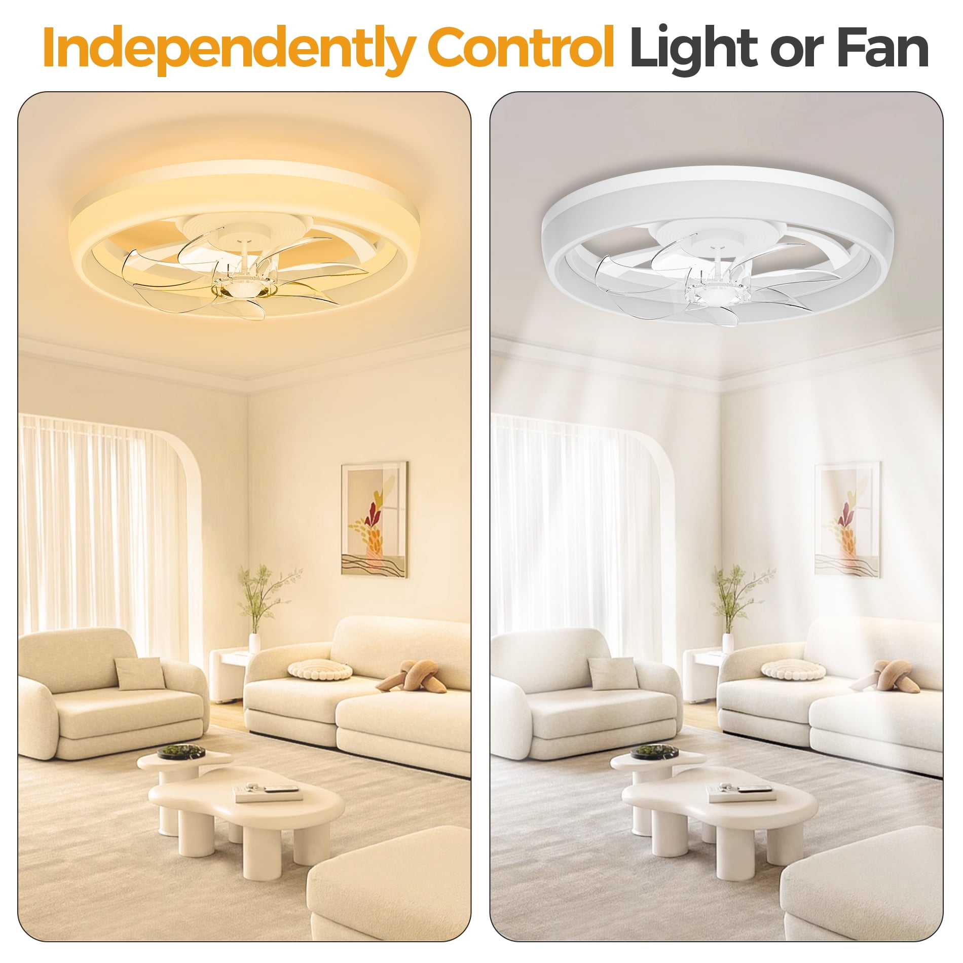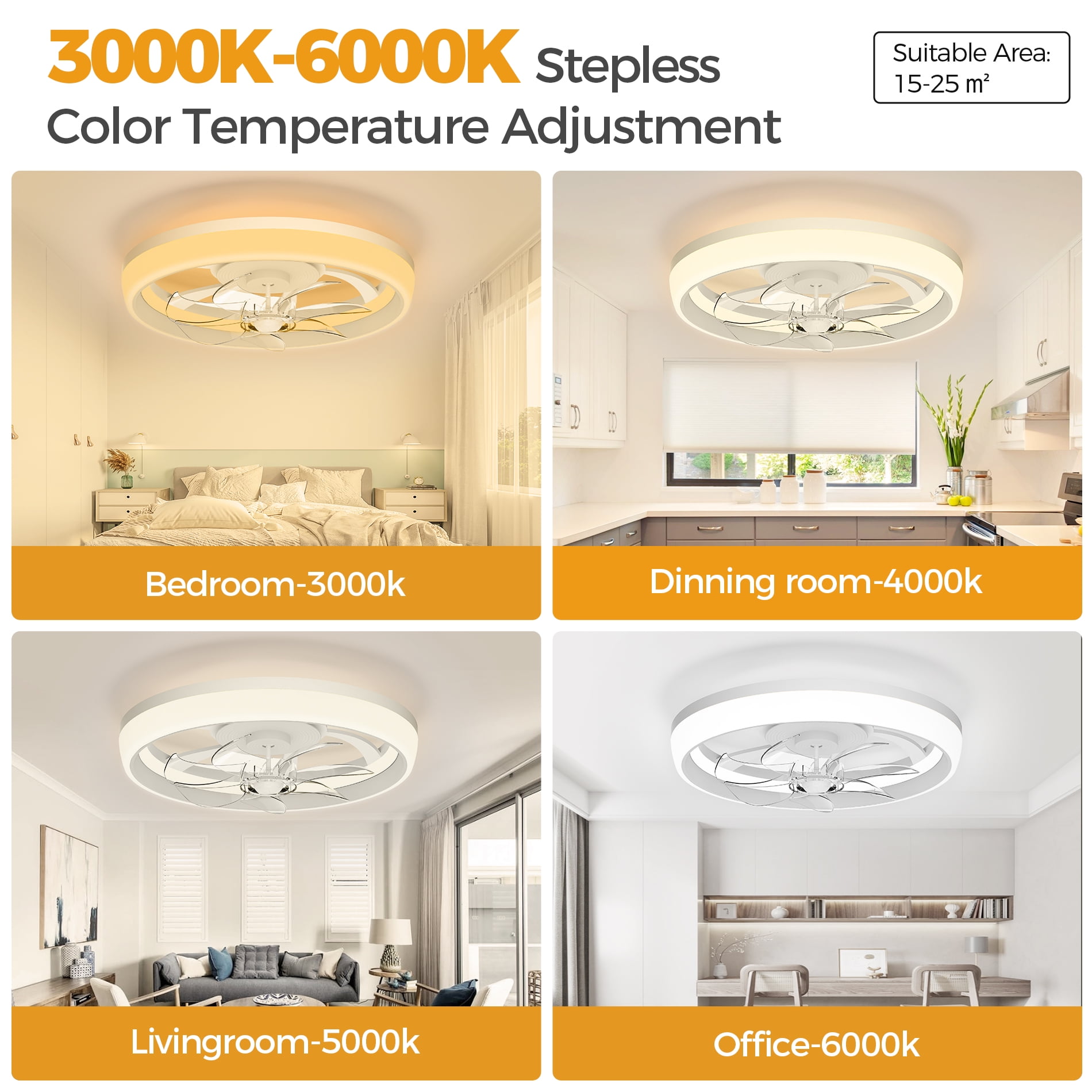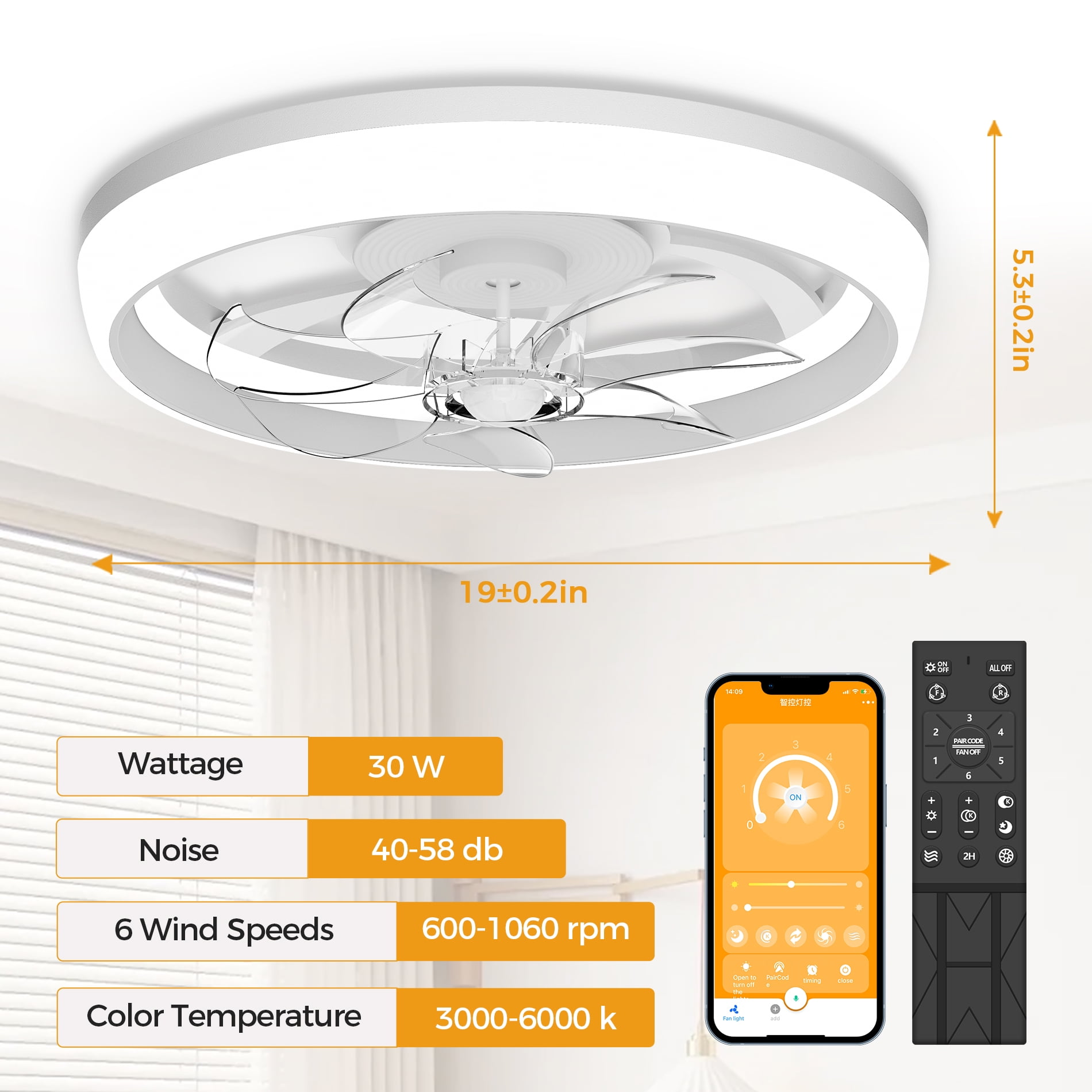 SKVEVN 19″ Ceiling Fan with Light – 3 Colors Lighting, 6 Wind Speeds, Remote Control&APP, Modern Dimmable LED, Smart Ceiling Fan for Bedroom(White)