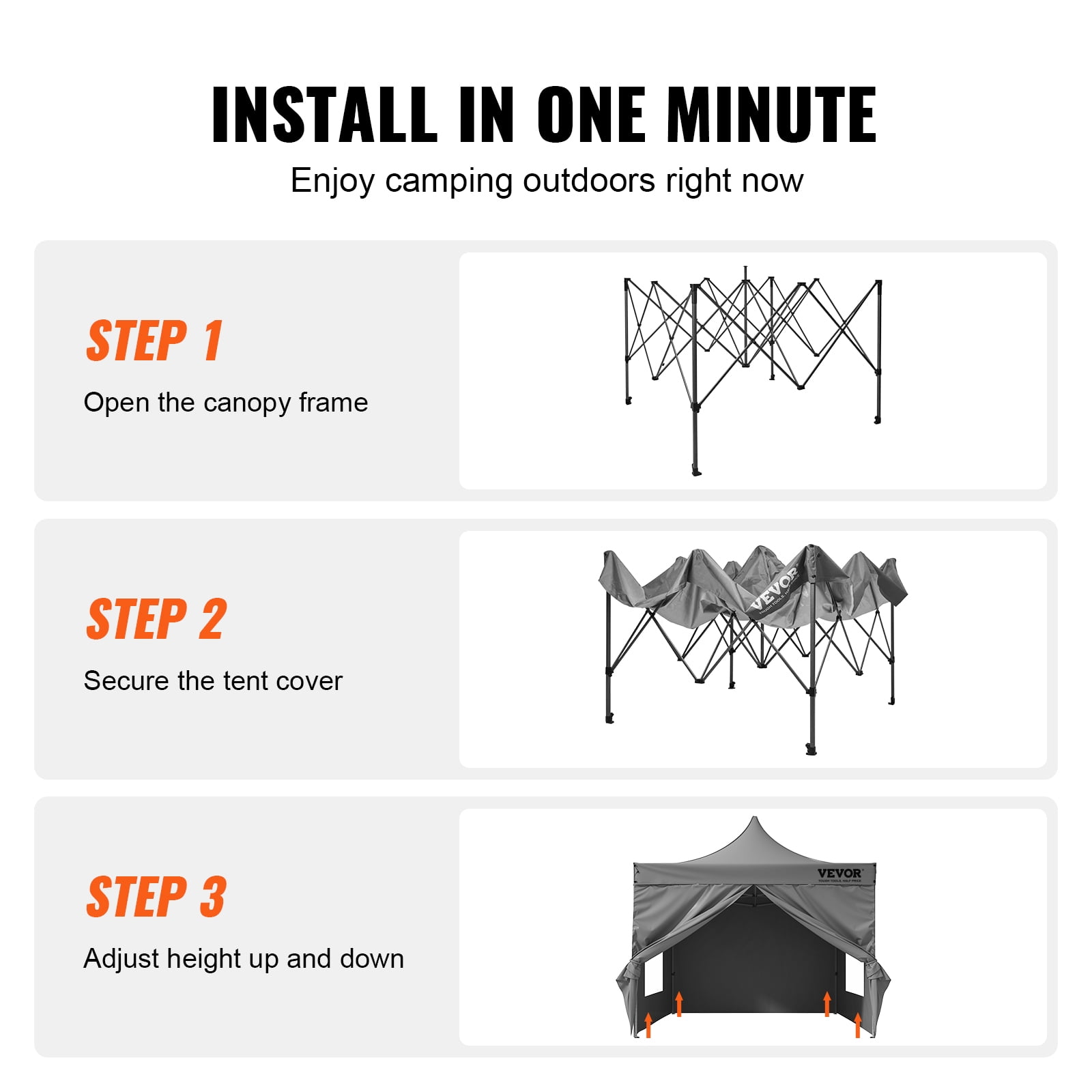 - Quick and Easy Assembly: Setting up this outdoor shade canopy is a breeze: simply take the assembled frame out of the bag, open it, place the canopy cover, and extend the legs. Not only serves as a camping tent or patio canopy, but our instant pop up tents are also ideal for outdoor activities, such as backyard party, picnics, parking your car, setting up a stall, and enjoying a barbecue.