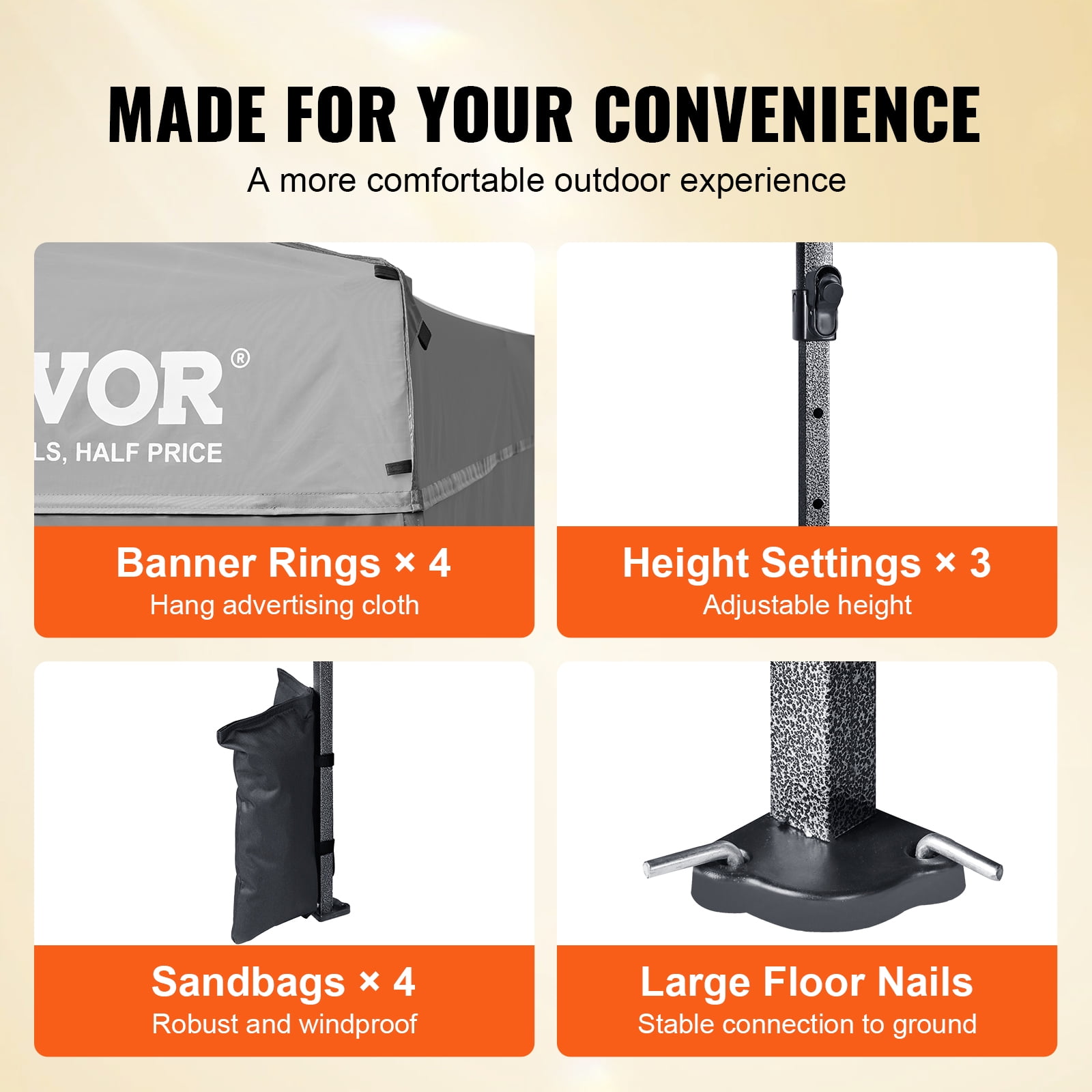 - Extra Large Pop up Canopy: This 10×10 pop up canopy tent can be assembled in one minute, providing a temporary gathering place of 100 square feet. With three adjustable heights and a maximum internal height of over 9 ft, it offers a spacious standing room. This canopy with sidewalls comfortably accommodates 6-8 people, providing sun shade for a comfortable gathering.
