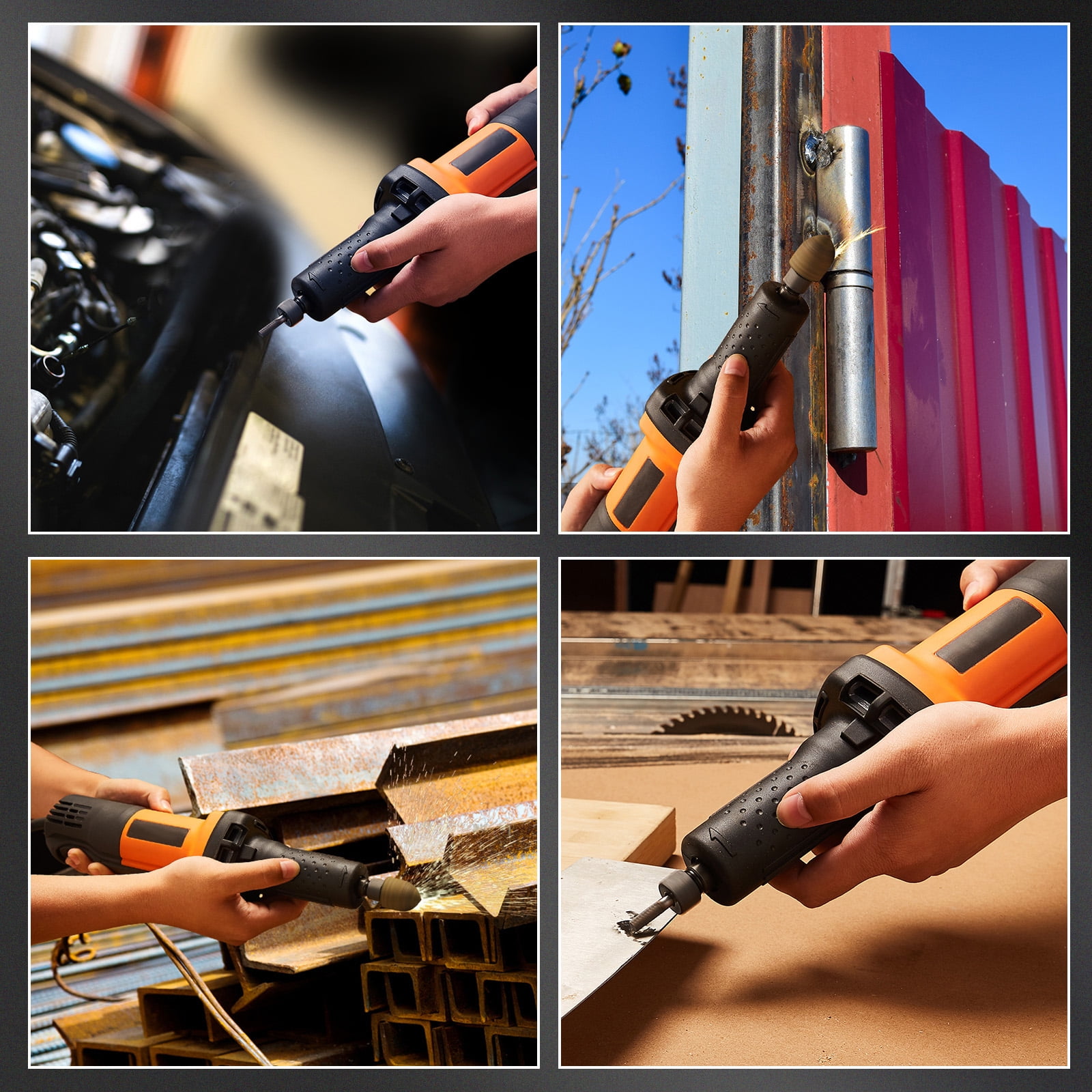 Product Description 7Amp Die Grinder Are you still troubled by the bulky and inconvenient mold grinder? SKYSHALO will be the ideal choice to bid farewell to your troubles. The possibility of using a powerful motor with a speed of up to 30000 revolutions per minute is infinite. You can improve productivity and efficiency in a short period of time. 6 Speeds Adjustment Determine your speed and take control of the situation! You can adjust the working speed from 7000 OPM to 30000 RPM. Grip into Action The anti slip coating and lightweight, low-noise mold grinding tools provide the ultimate work experience. Polishing Polishing can make cars look smoother and brighter. SKYSHALO mold grinding machine can be used to polish parts such as car bodies, wheels, exhaust pipes, etc. Trimming and Shaping the Weld Seam After welding is completed, the SKYSHALO mold grinder can use different types of grinding heads to trim and shape the weld seam. Welding Appliance Repair When welding equipment malfunctions, SKYSHALO mold grinding machines can be used to remove damaged parts, repair and replace them. Woodworking SKYSHALO Mold grinding machines can use different types of woodworking tools to perform tasks such as woodworking carving, trimming, and shaping. Specifications Voltage: 120V/60Hz Rated Current: 7A Brush Motor: 820W No-load Speed: 7000-30000 RPM Adjustable Speed: 6 Levels Setting Weight: 4.2 lbs / 1.9 kg Cord Length: 5.9 ft (1.8 m) Replaceable Collects: 1/4″ / 1/8″ No load Current: 2.55A max Protection Grade: IP20 Noise Level: ≤90dB Package Content 1 x Die Grinder 2 x Open End Wrench 1 x Pair of Carbon Brush 1 x 1/8″ Replaceable Collect 1 x 1/4″ Replaceable Collect