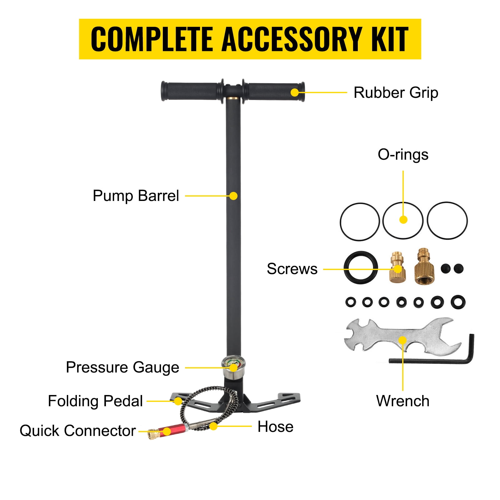 3-Stage High-Pressure Pump: Our 3-stage PCP hand pump for airguns is a powerhouse that can easily reach 4500 PSI pressure. This PCP pump compresses the maximum amount of air with each smooth stroke, allowing you to save approximately 30% of energy compared to traditional hand pumps. Get the job done efficiently and with less effort. Built-In Oil And Water Filter: Our PCP airgun pump comes with a built-in oil and water filter, which can effectively filter water and more than 90% of moisture. It ensures your PCP rifle is filled with dry, clean, high-pressure air and allows you to easily fill your scuba tanks without introducing moisture. Say goodbye to humid air and enjoy the benefits of a dry and reliable air source. Durability And Stability In One Our PCP air rifle pump is made with integrated stainless steel pump tubing that is rust-resistant. The thickened exterior ensures high reliability and long-lasting vibrant colors. The comfortable rubber handle provides a secure grip, while the foldable handle enhances stability, making storage and transport a breeze. Invest in quality and enjoy the durability and convenience our pumps provide. Clear Readings, Precise Measurements: Our high-pressure hand pumps feature accurate pressure gauges to ensure you always have accurate pressure, avoiding spills and creating a safer working environment. The 0-6000 PSI measurement range and night vision ensure you can read pressure levels even in dimly lit environments. Our meters are available in two units of measurement to suit your reading habits. For All Your Inflation Needs: Our PCP hand pump is designed specifically for PCP airguns, ensuring your airgun is always ready for action. Our PCP air pumps handle car tires, motorcycle tires, bicycle tires, kayaks and footballs with ease. It makes maintaining proper tire pressure a breeze. Choose our versatile PCP hand pump and enjoy the convenience of a single pump for all your inflation needs.