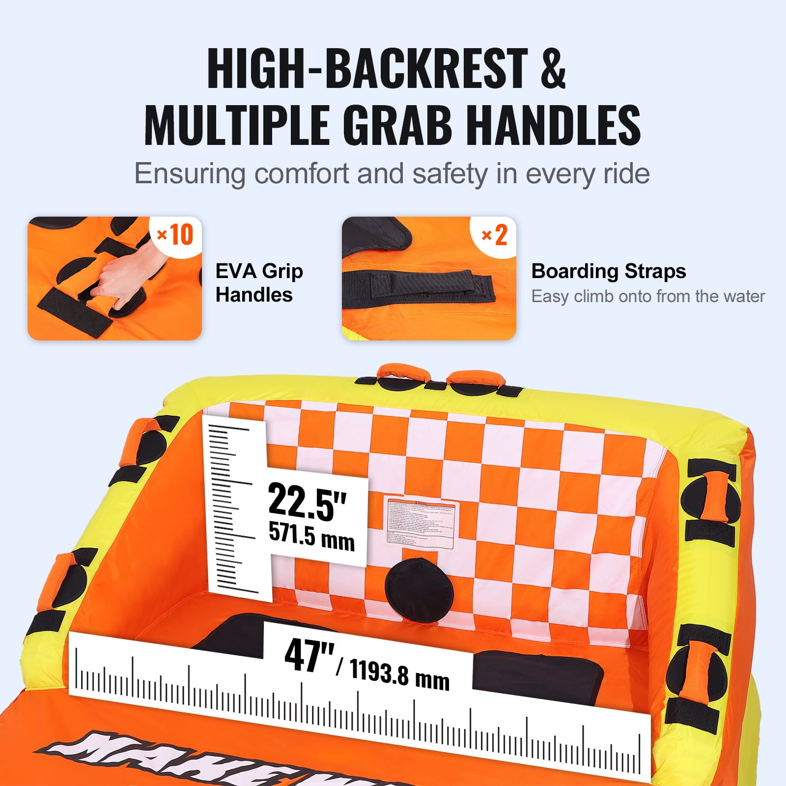KFFKFF Inflatable Towable Tube for Boating 1-2 Rider with Deck Seats and Backrest