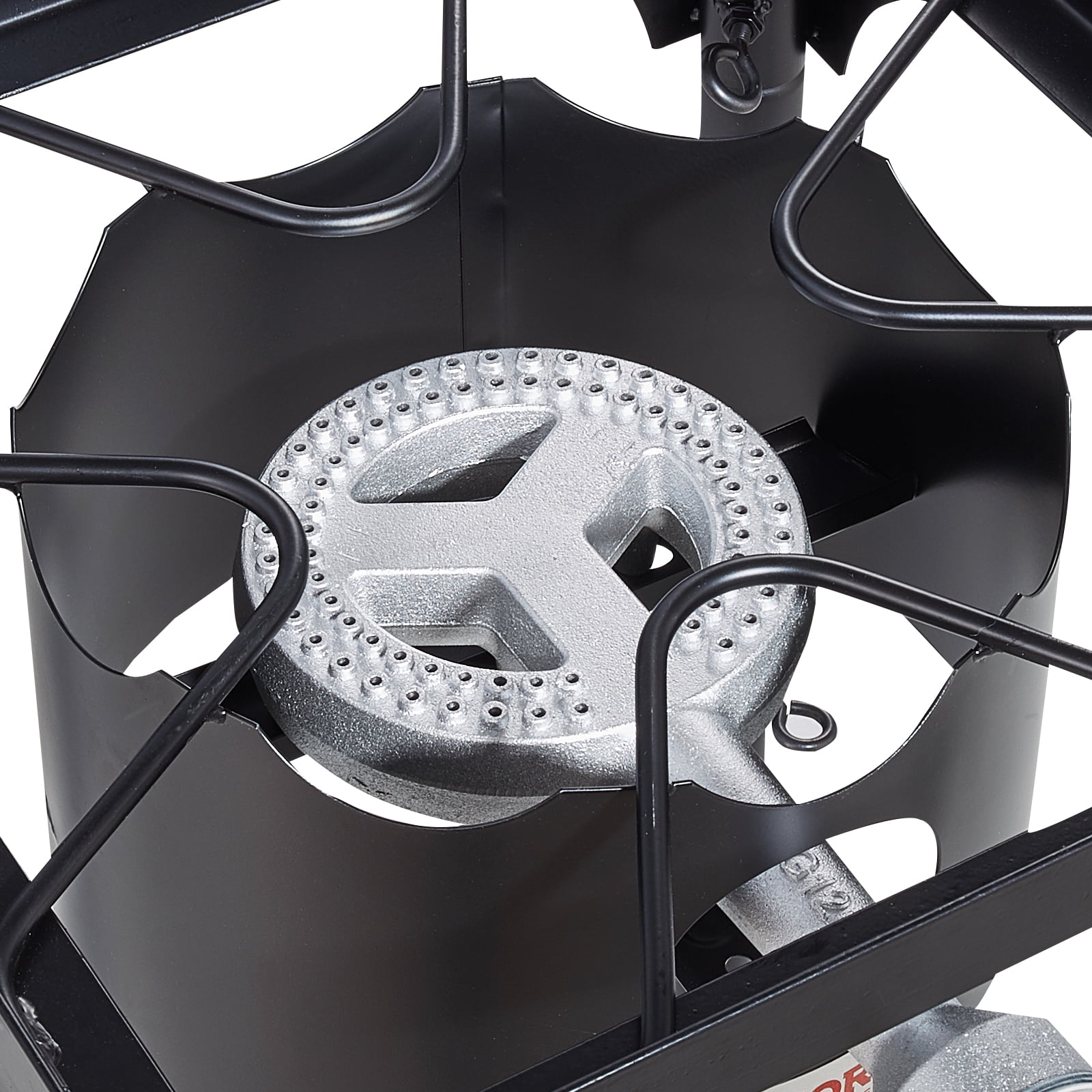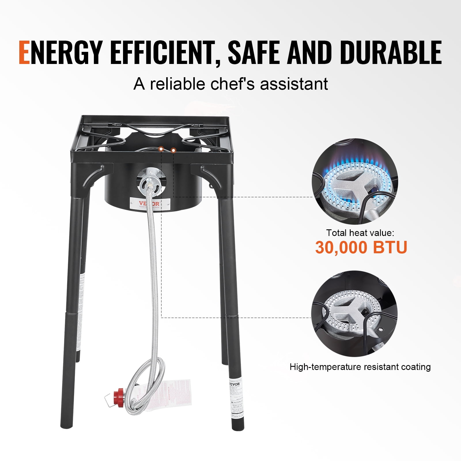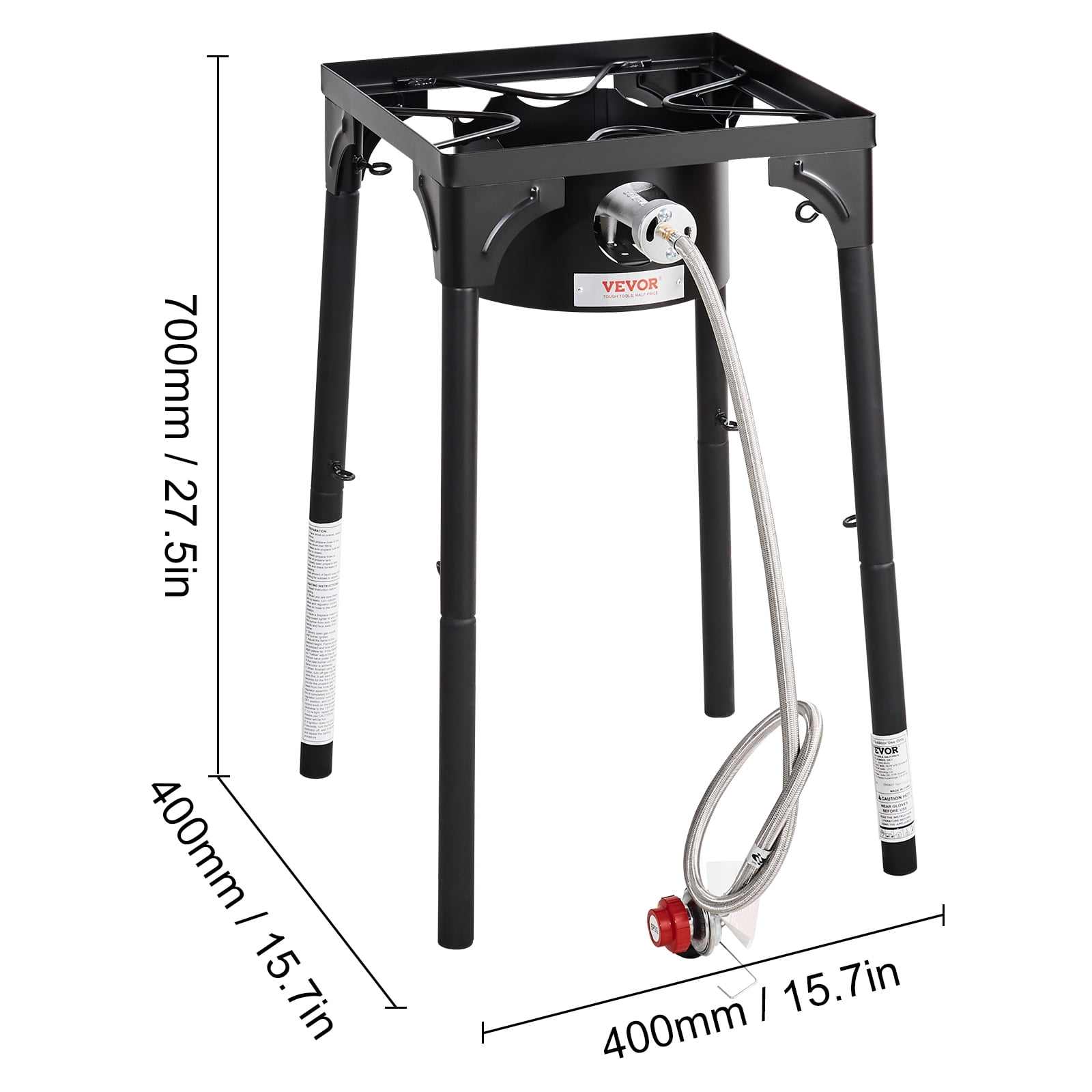 Product Description Multi-functional Gas Stove Designed with multifunctionality in mind, this gas stove offers convenient and cost-effective cooking. It is perfect for outdoor cooking, making it an ideal companion for holiday picnics, camping, exploration, and parties. It is particularly suitable for the modern urban lifestyle. Multi-functional Gas Stove Designed with multifunctionality in mind, this gas stove offers convenient and cost-effective cooking. It is perfect for outdoor cooking, making it an ideal companion for holiday picnics, camping, exploration, and parties. It is particularly suitable for the modern urban lifestyle. Abundant Accessories The set includes the stove, a PSI regulator, gas hose, and more. It provides convenience in installation and usage. The compact overall structure makes it easy to carry while traveling. Safe and Reliable With a high-temperature resistant coating, the camping stove can withstand high temperatures and delay rusting, ensuring durability and fire safety. The heavy-duty frame and detachable Legs design provide stability and ease of carrying and storage. Compatibility with Various Cookware Highly inclusive and adaptable, the gas cooker can accommodate a variety of cookware, allowing for versatile and delicious cooking. It is suitable for outdoor pizza ovens, grilling boxes, grill racks, and pans, catering to a wide range of culinary needs for home parties. Simplified Cooking The independent burner and knobs allow for precise control of the heat output. With a maximum output of 30,000 BTU, this camping stove ensures optimal cooking speed. It enables grilling, frying, boiling, stewing, and stir-frying various creative dishes. Ultimate Outdoor Cooking Experience The powerful upright outdoor gas stove offers mobility and cooking flexibility for camping, backyard barbecues, parties, catering, food trucks, and RV travels. From pancakes, bacon, and eggs to steaks, burgers, and hot dogs, this gas stove will not disappoint you. Specifications Item Model Number: GB-1 Fuel Type: Liquefied Petroleum Gas Material: Body – Q195 Carbon Steel, Cast Iron Product Dimensions(LxWxH): 15.7×15.7×27.5 inch / 400x400x700 mm Power Source: Gas-powered Maximum Energy Output: 30,000 BTU Item Weight: 7.65 kg (including all accessories) Package Content 1 x Outdoor Camping Stove 1 x PSI Regulator 1 x Gas Hose 8 x Fastening Screws