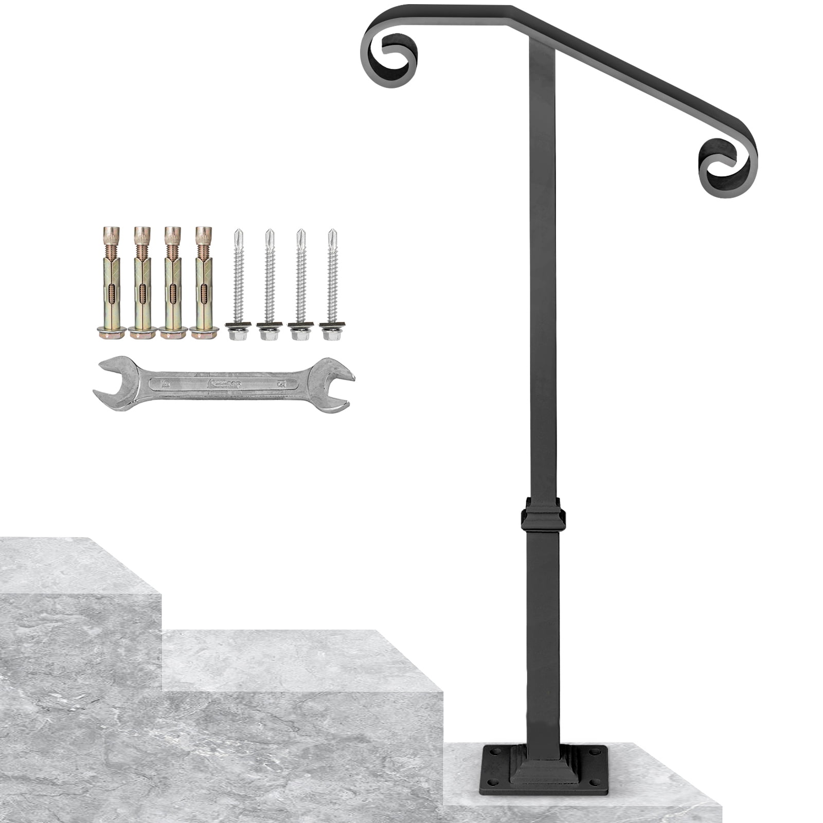 SKYSHALO Single Post Handrail Gray Handrail Wrought Iron Fits 1 or 2 Steps Matte